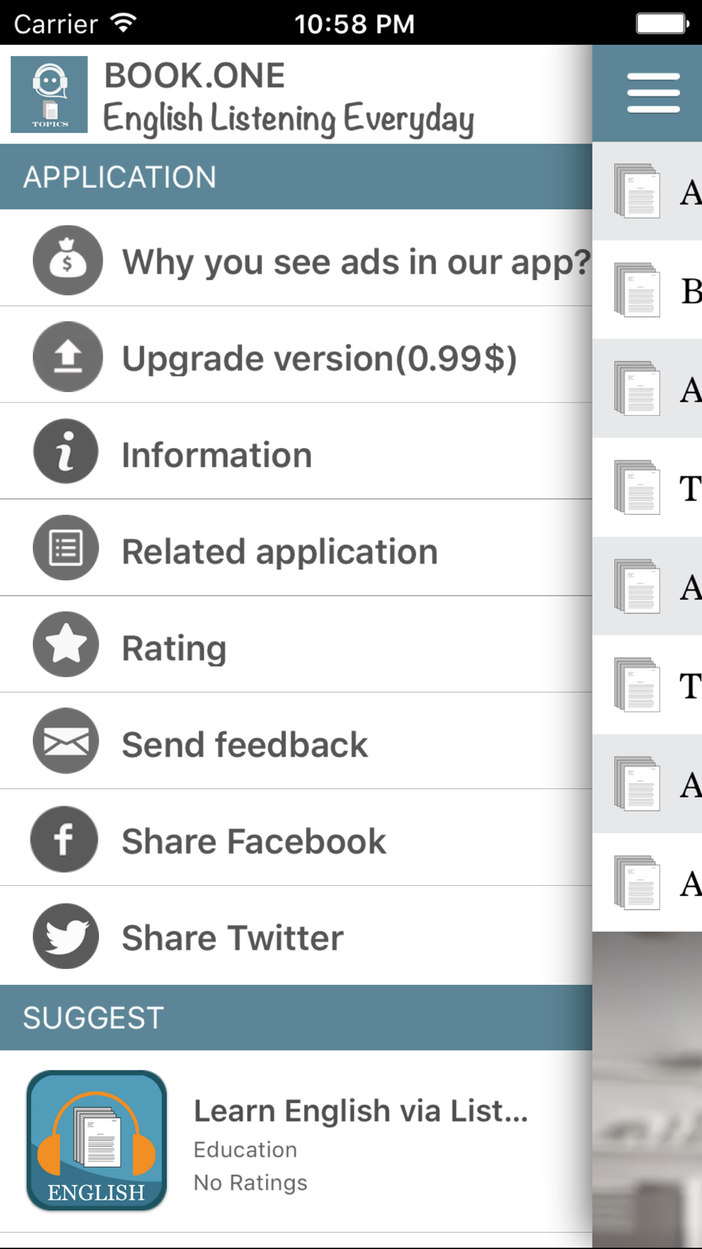 Listen English Everyday with popular topics help you improve listening, reading and writing skill.