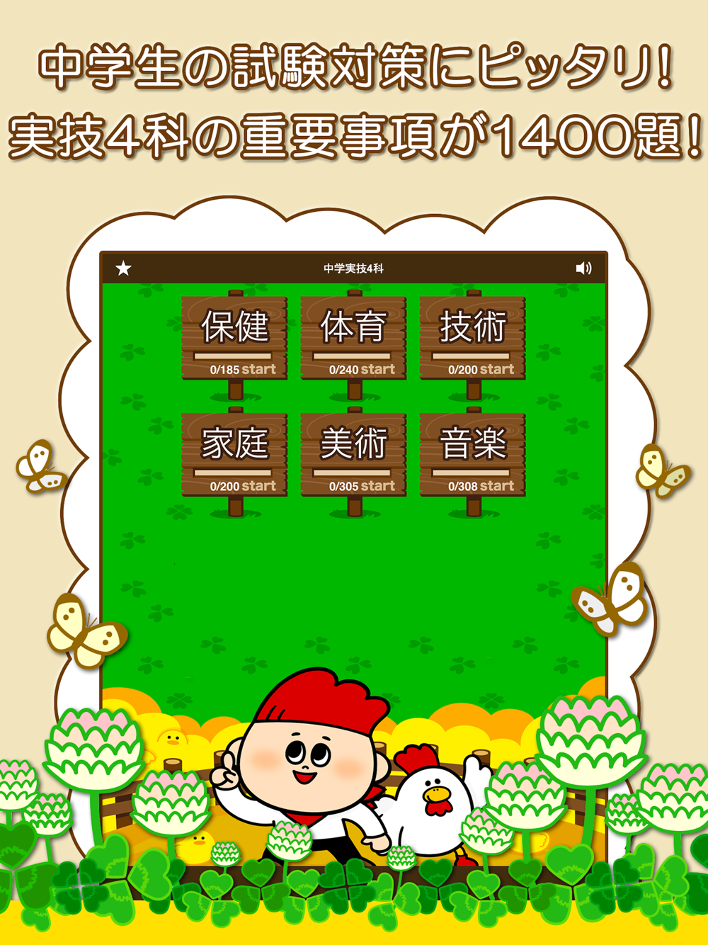 中学で勉強する実技4科(保健体育、技術家庭、美術、音楽)の重要基本問題が1000問題以上!