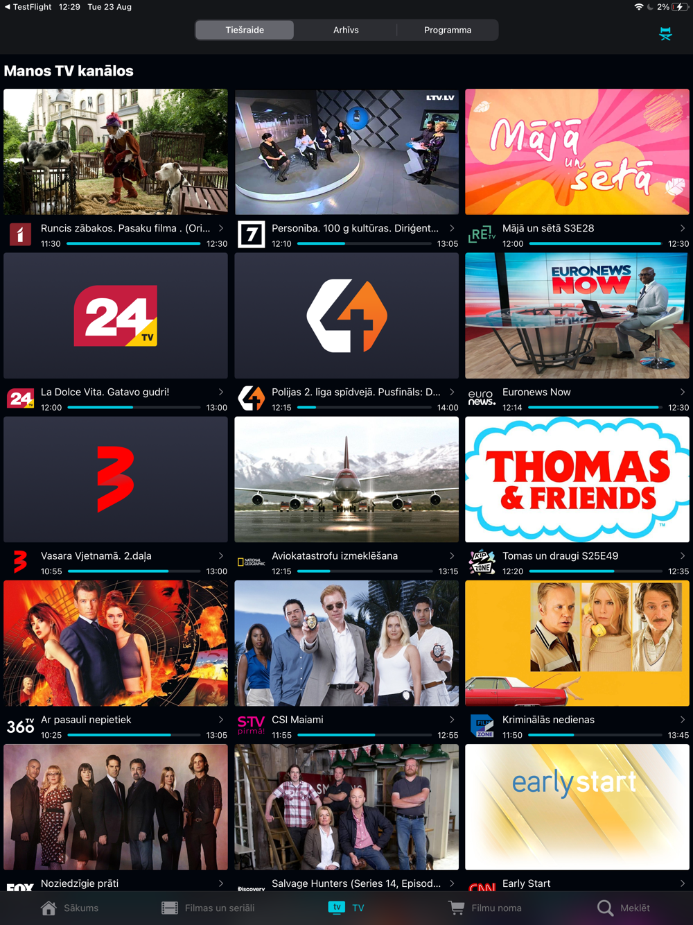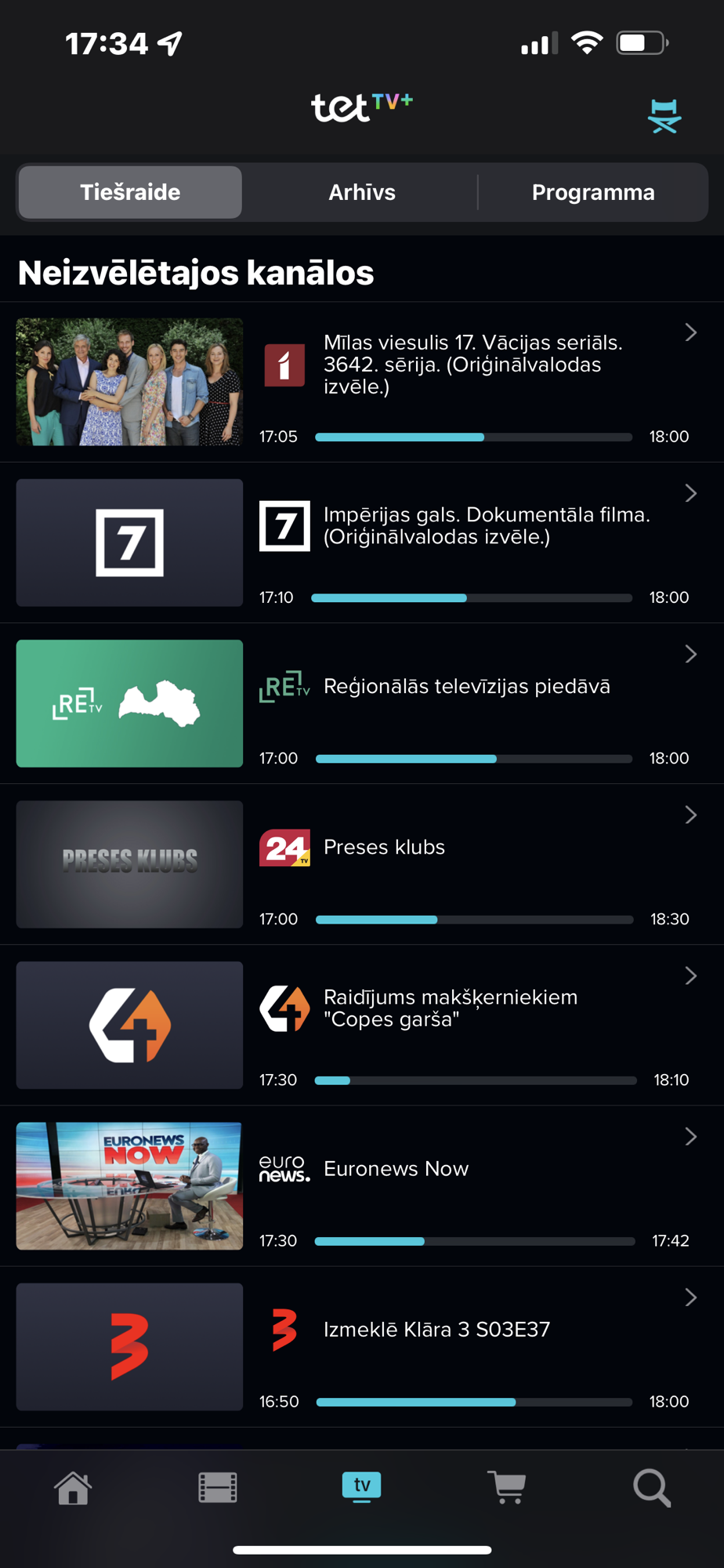 TV tiešraidēs un arhīvā: sports, ziņas, filmas, raidījumi bērniem, seriāli u.c. Iespēja redzēt vairāk kā 100 populārākos TV kanālus.