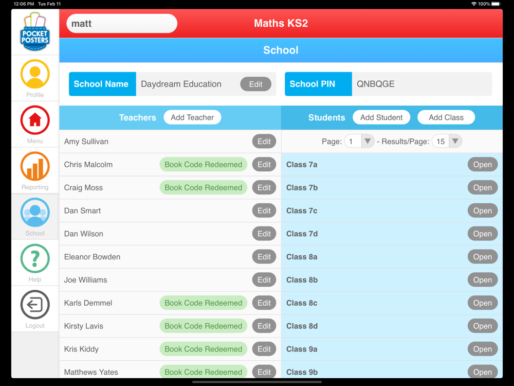 - Teacher portal – Teachers can set up a school and instantly view pupils’ results