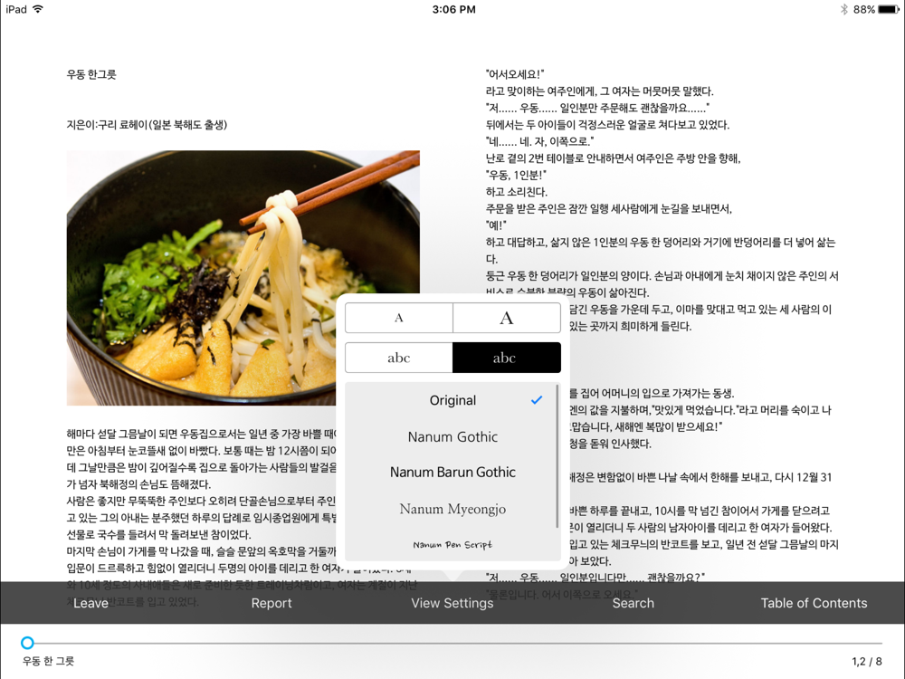 - 글자 크기와 글꼴, 책 배경 색까지 내 눈에 편하게 선택