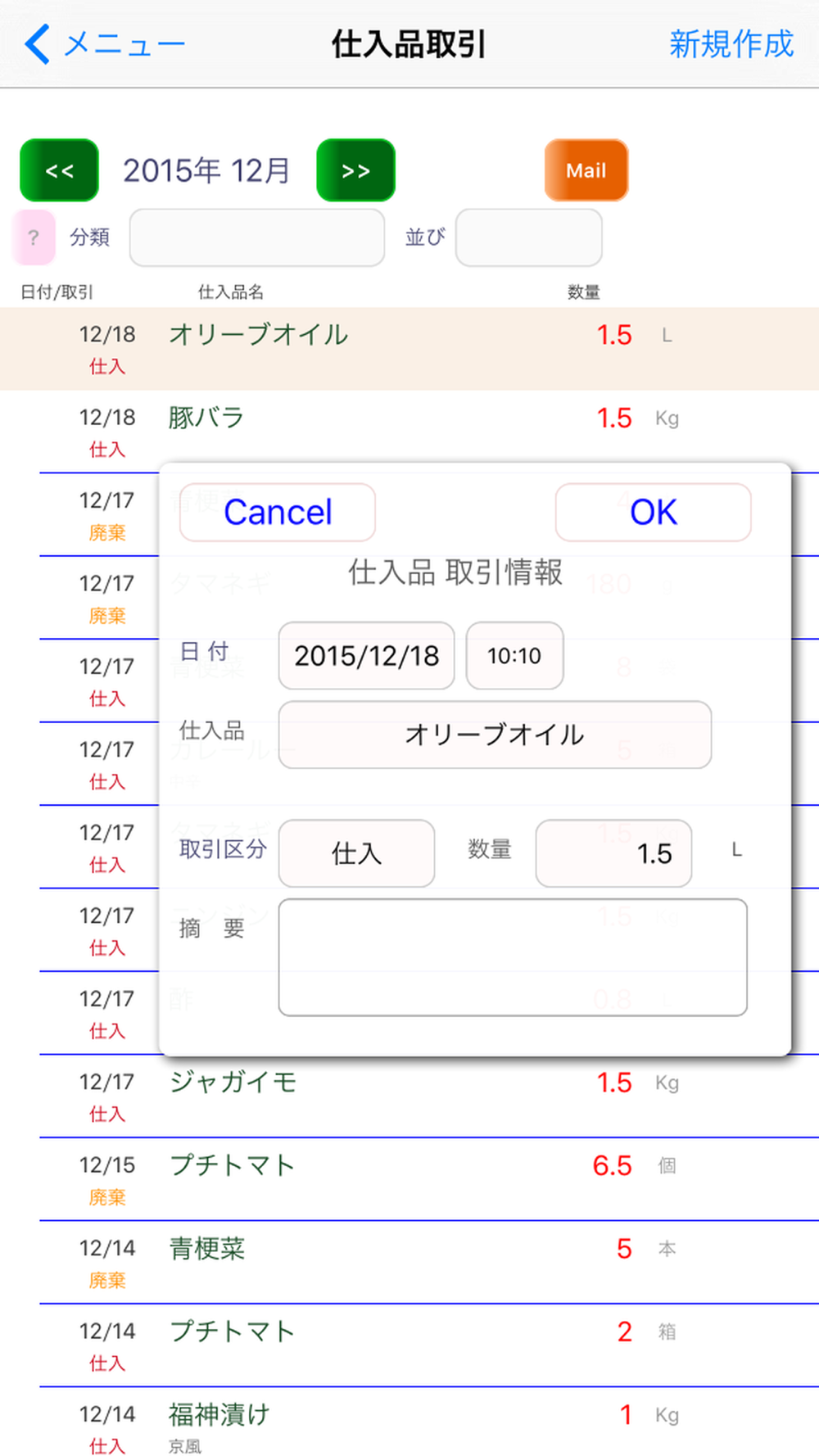 仕入品に関する取引(仕入・販売・調整・廃棄など)を作成、管理します。