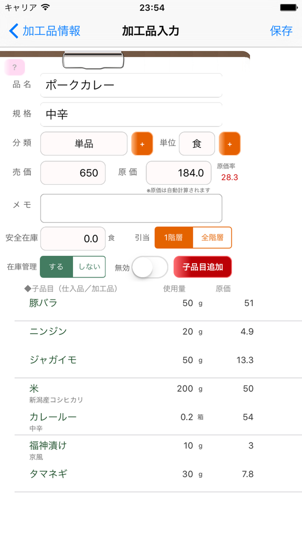 (ご好評頂いています「レシピ原価計算」をベースに、在庫管理を実装しました。)