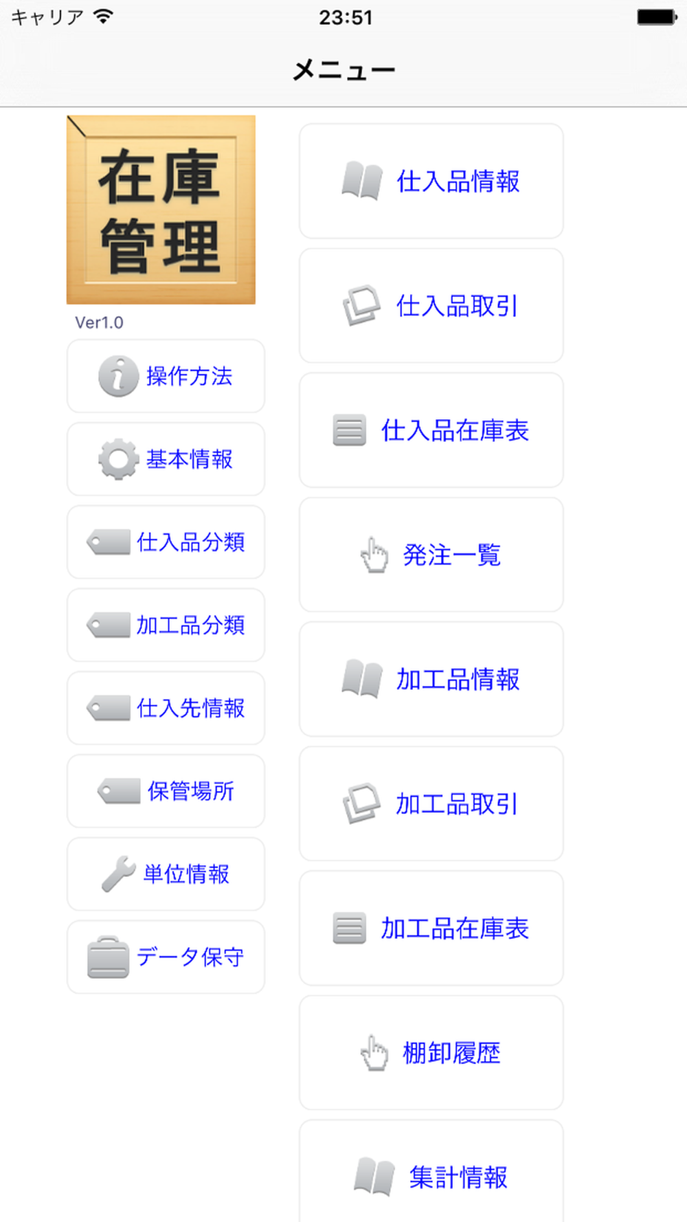 仕入品に関する在庫(在庫数、在庫金額、予定在庫、棚卸)を管理します。また、棚卸入力を行います。