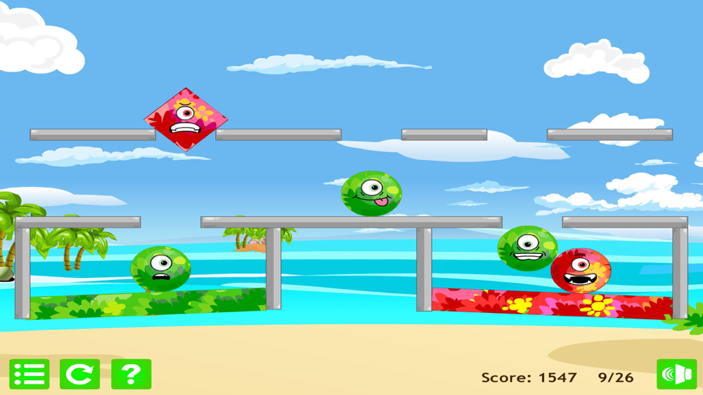 This is a sea beach theme of game,very for leisure entertainment,game design novel interesting,game scene in the has the has all of objects,players of purpose is to let red spent pattern of objects returned to spent of Home World,green leaves pattern of objects returned to leaves of Home World,need note of is they cannot and other contact other of home,game scene in the has various,objects you need clever of using and avoid they.Each level of difficulty varies,maybe some puzzles you need to try several times,in the blue sky and sea against the background retry count it again a few times.If you think this game is good,you can share it with your friends...let them join in.games for mainstream mobile phones and tablet computers.players of all ages.