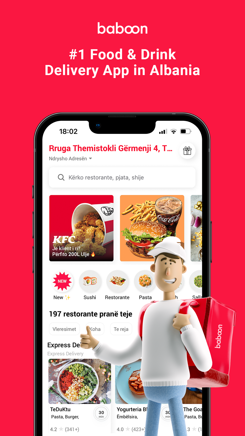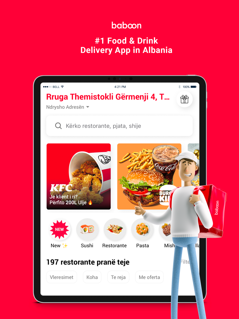 Baboon ofron Shërbim Delivery, Kudo, Kurdo 24/7.