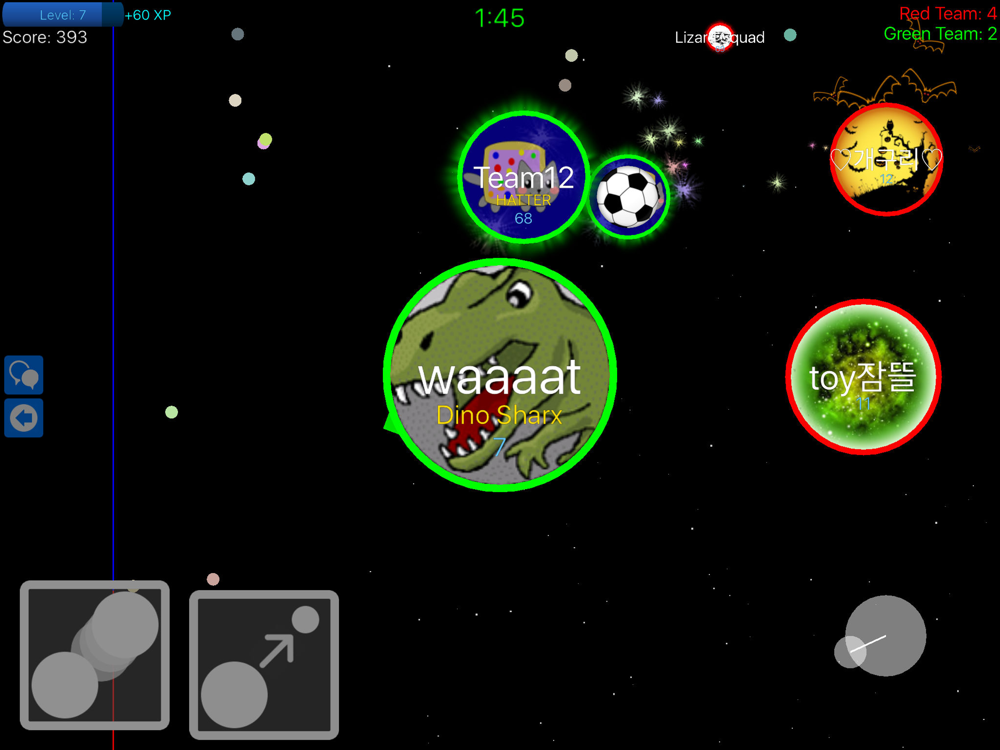 Grow your blobs by collecting dots placed throughout the game or gobbling up smaller players. Avoid bigger players attempting to do the same. Compete with other players to become the biggest blob in the universe!