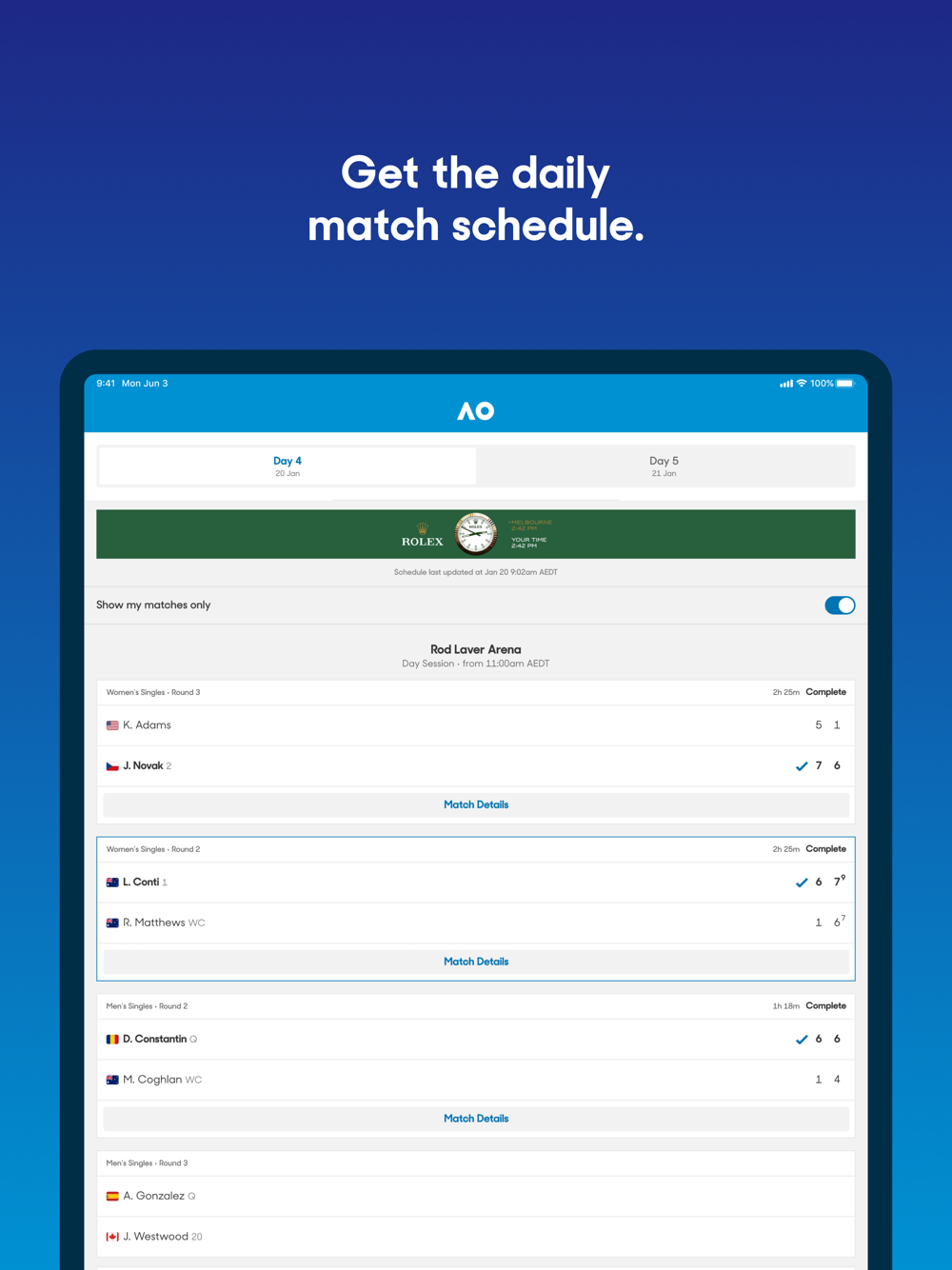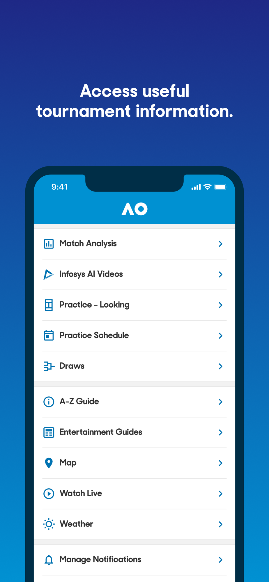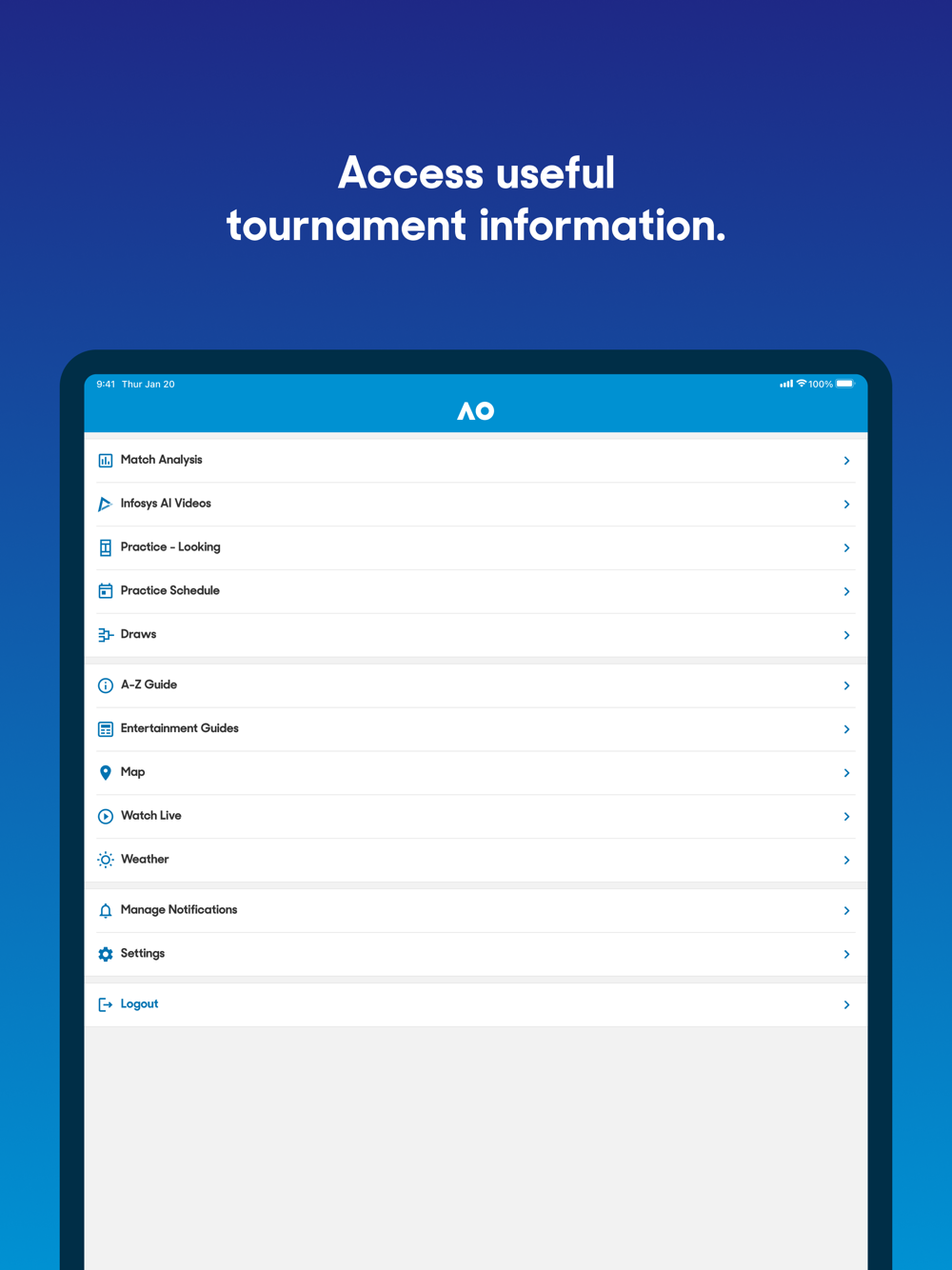 The AO Player App is Tennis Australia’s official Player App of the Australian Open.