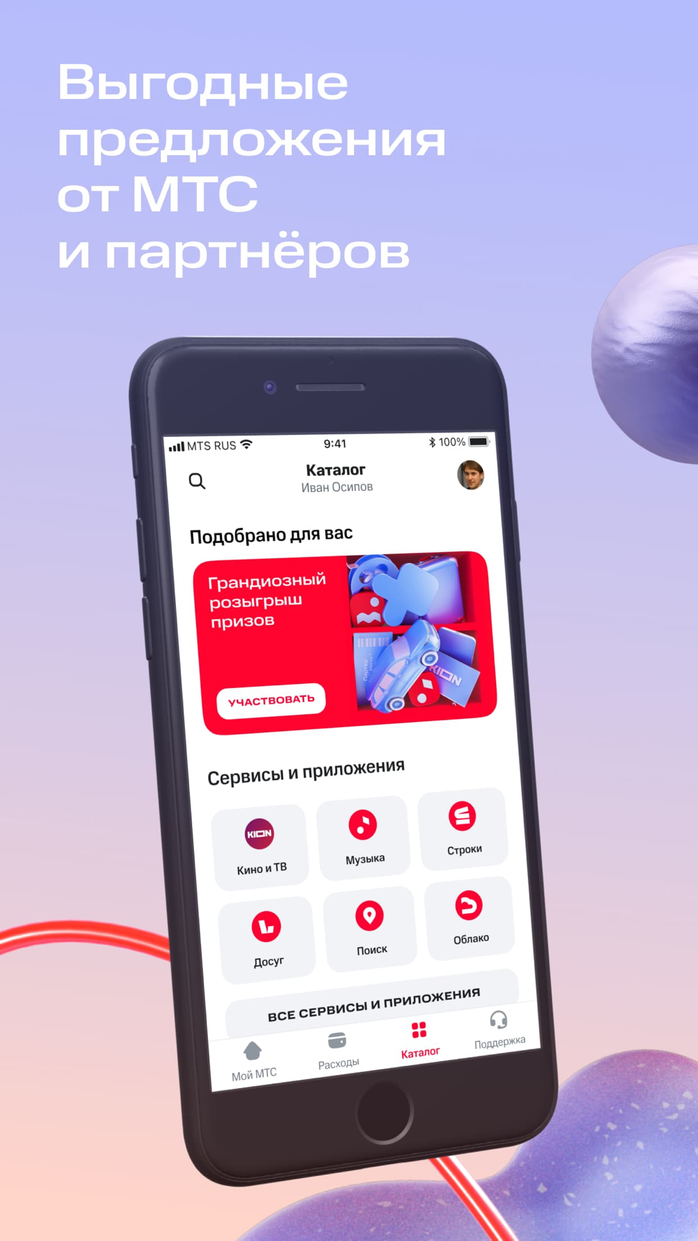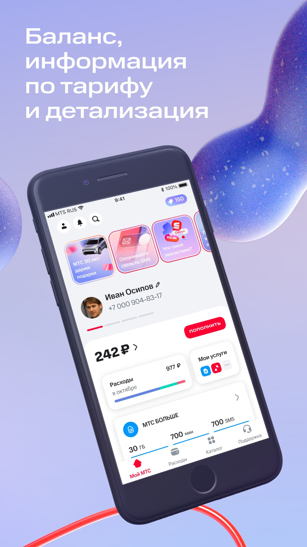 В каталоге вы найдёте тарифы и подписки, услуги мобильной и фиксированной связи, сервисы для детей, отдыха, безопасности и здоровья. Все сервисы экосистемы МТС — в одном приложении.