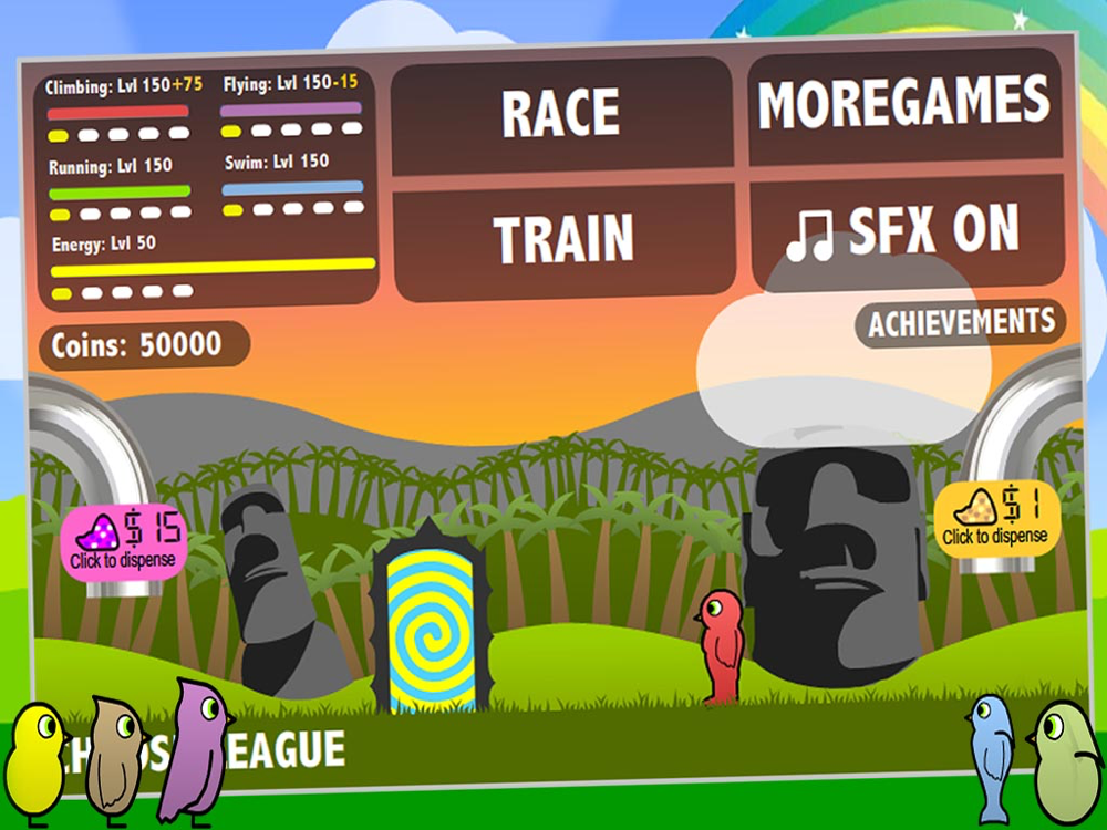 Collect coins and purchase upgrades to help your duck become world champion. Spend your money and purple SuperSeeds wisely.