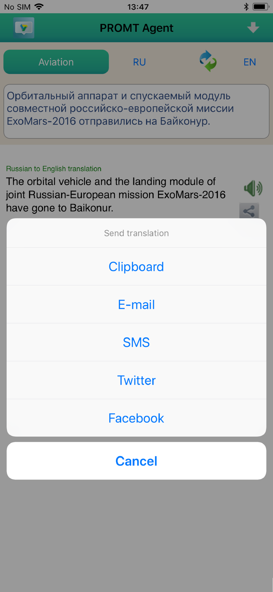 PROMT Agent is a client application for PROMT Neural Translation Server, allowing you to make translations on your smartphone or tablet and featuring: