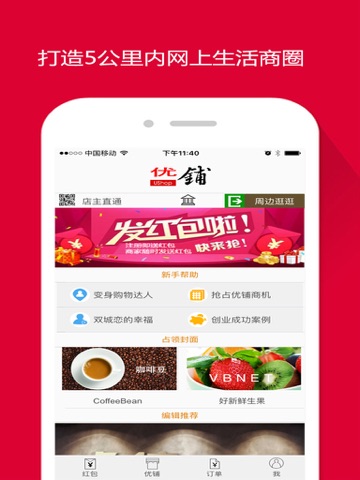(1)店主发送的红包其实是优惠券,顾客抢到后只有在他优铺购买时才能使用。