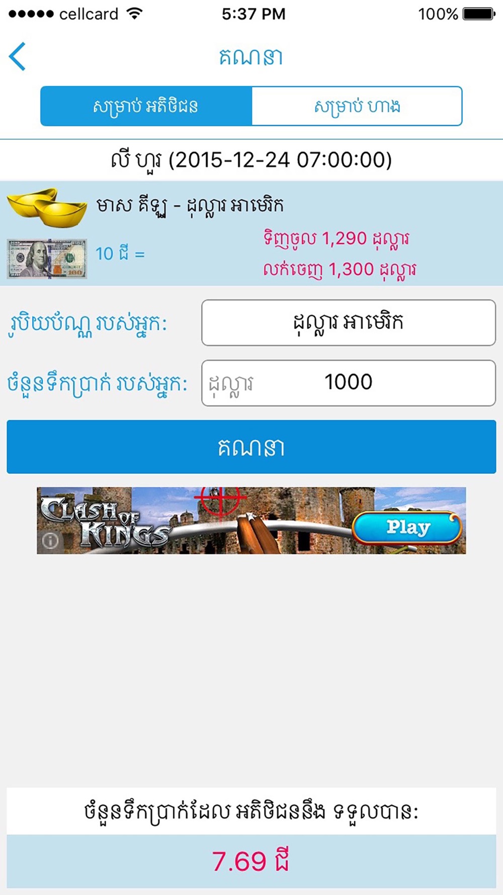 Khmer Exchange Rate is the newest application which allows users to check daily exchange rate from confident sources as like Market, ACLEDA bank, and National Bank of Cambodia (NBC). More interestingly, there are many helpful functions such as: