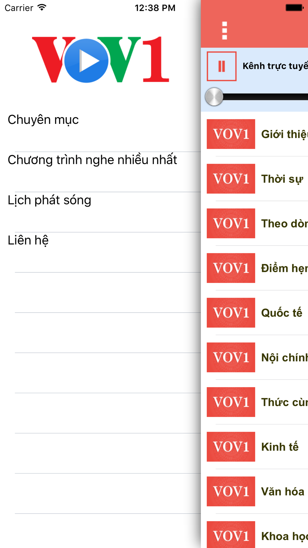 - Hệ phát thanh chính thức của VOV1 Đài tiếng nói Việt Nam , cho phép nghe kênh trực tuyến của hệ VOV1 trên thiết bị di động.