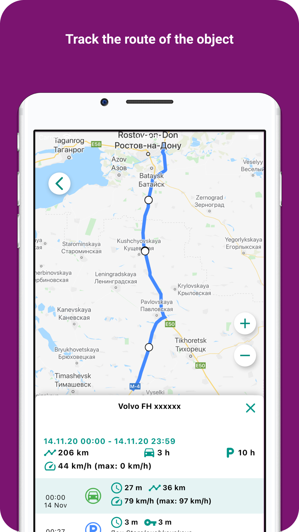 The GPS/GLONASS vehicle Tracking system allows you to monitor the location of the monitored objects, account and record the history of the routes. All information about the movement of the vehicle is displayed on the interactive map in real time. The object data are available remotely.