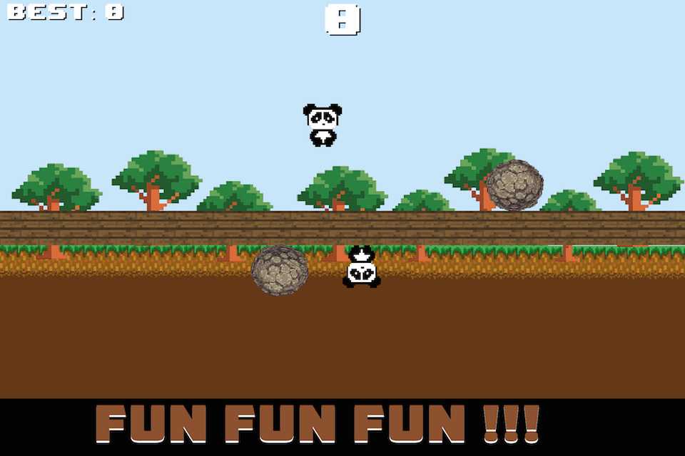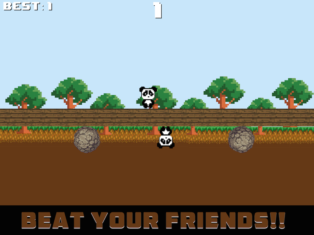 You and your panda buddy have to and jump to stay alive for as long as you can!!! Tap the screen to jump and avoid the rocks. If the rocks hit you, you and your panda buddy die. Don't let the rocks crush you!!