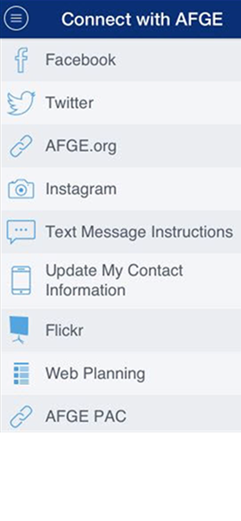 This app will provide you with AFGE event agendas, speakers, maps, attendee lists, logistics info, messages/updates, twitter feed and more all in the palm of your hand.