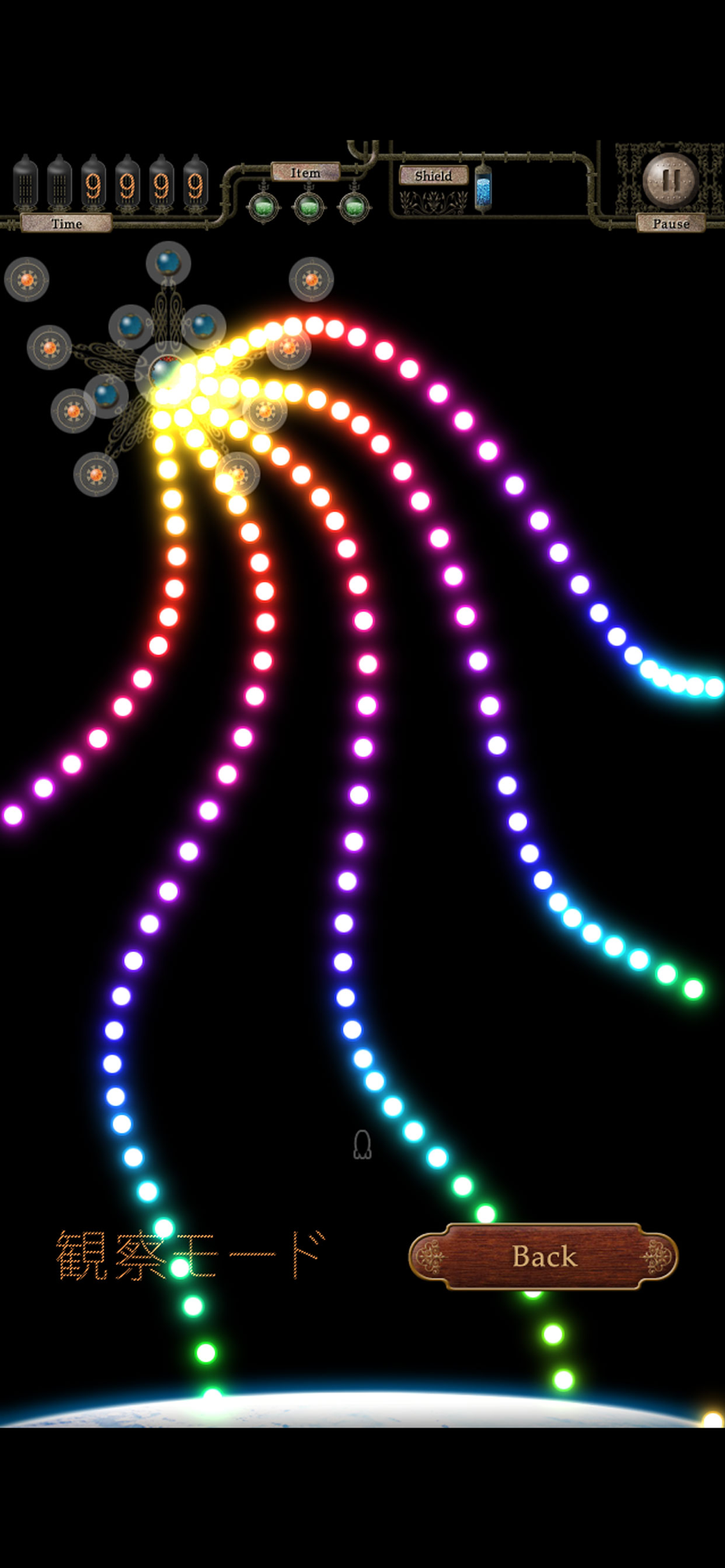 弾幕上級者の方には最難関の「硬派モード」や「耐久モード」でも物足りないかもしれません。その場合は「通常モード」でハイスコアを他の方と競ってください(GameCenterに対応しています)。
