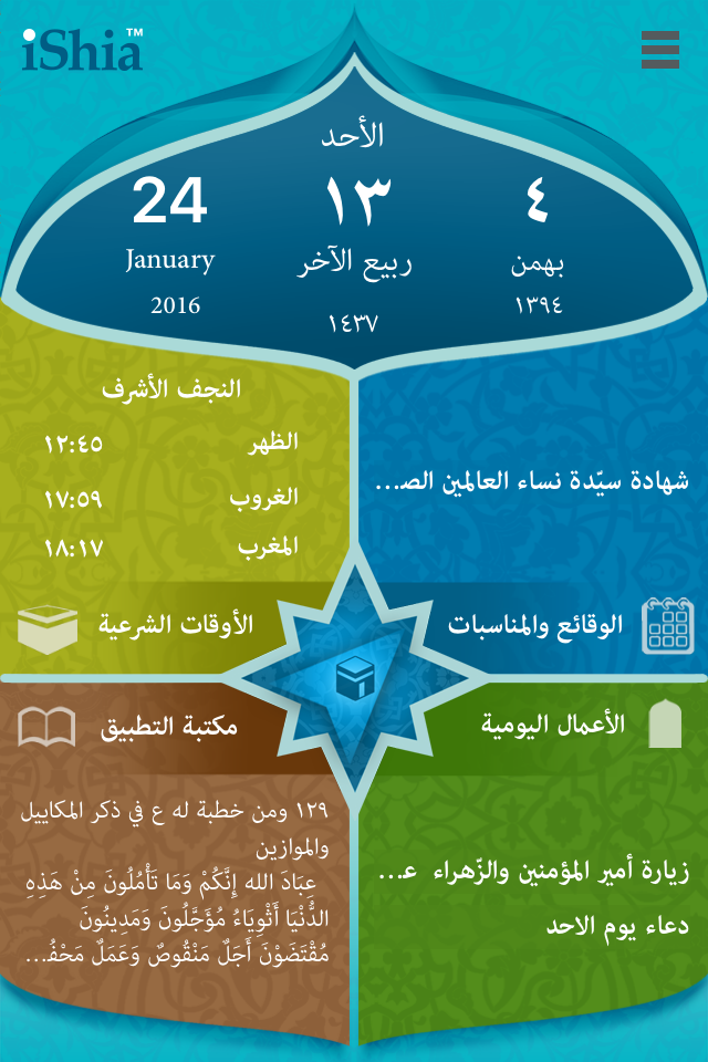 تطبيق لتوفير المعلومات الأساسية للمؤمنين الشيعة باللغات العربية والفارسية، وقريباً الإنجليزية.