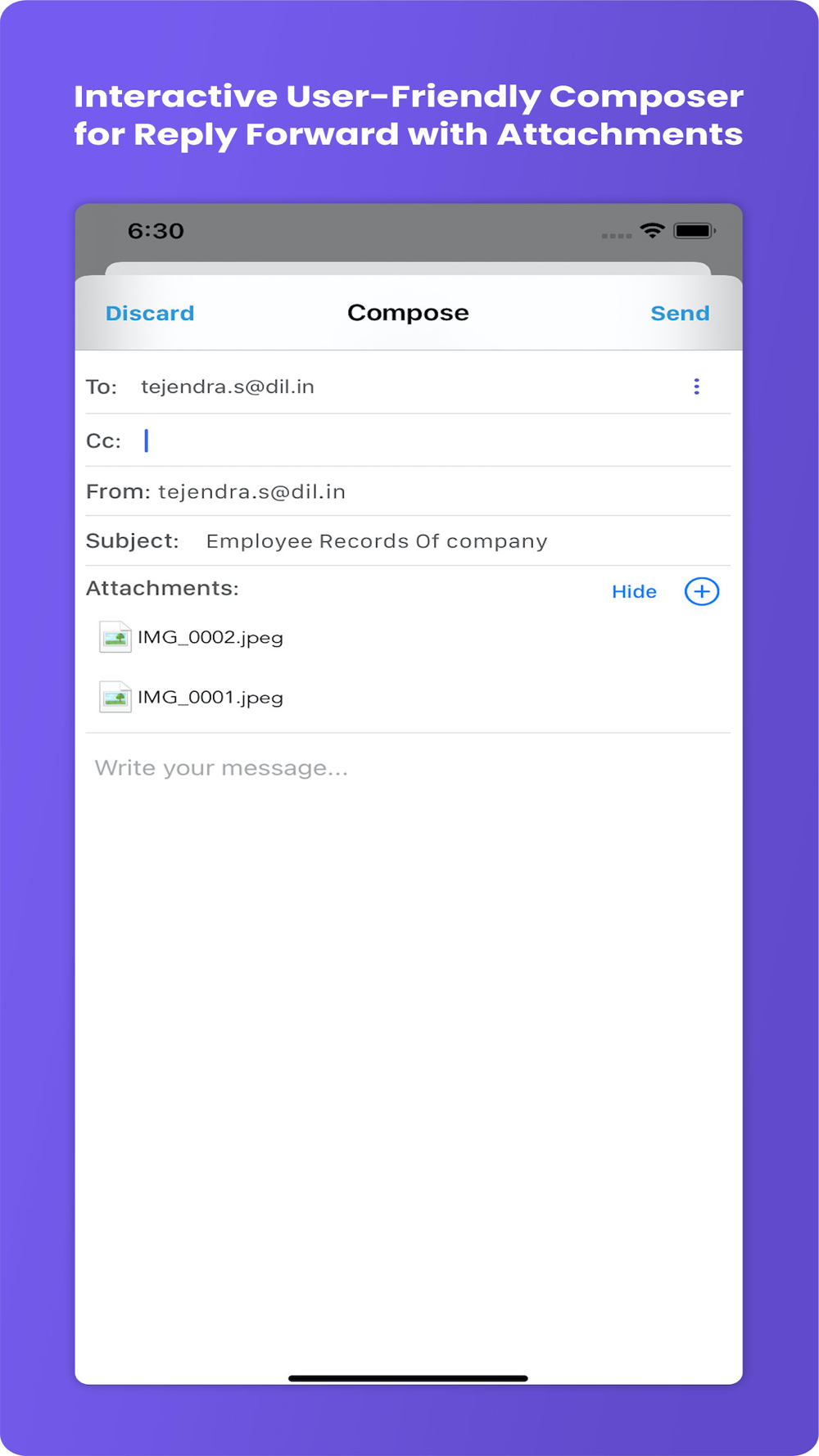 XGen Email App is powerful feature rich for emailing needs. It supports easy config for email account along with full support of Read / Delivery notifications, IDN email configuration, mark attendance. Email address in English, Hindi, Gujarati, Tamil, Telugu, Punjabi, Urdu and others are supported.