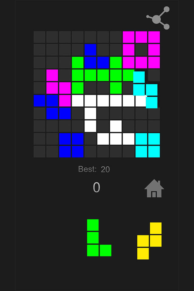 Each round, the bottom will generate 3 group box. You need with finger drag them into the chessboard. Full row or column will eliminate the box and extra points Oh ~