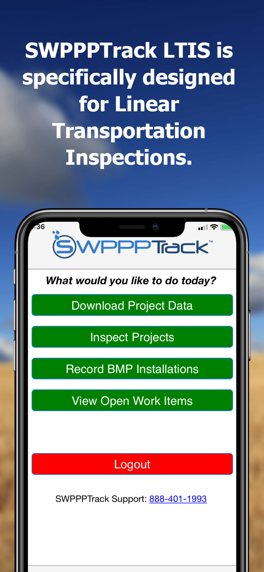 The SWPPPTrack Stormwater Pollution Prevention Management Software includes a mobile application that makes reporting from the field fast, easy and effective. The app allows you to perform inspections, identify issues, create and manage action items, take photos, view photos, and view plans. The mobile application syncs to your custom tailored SWPPPTrack database/workflow management systems.