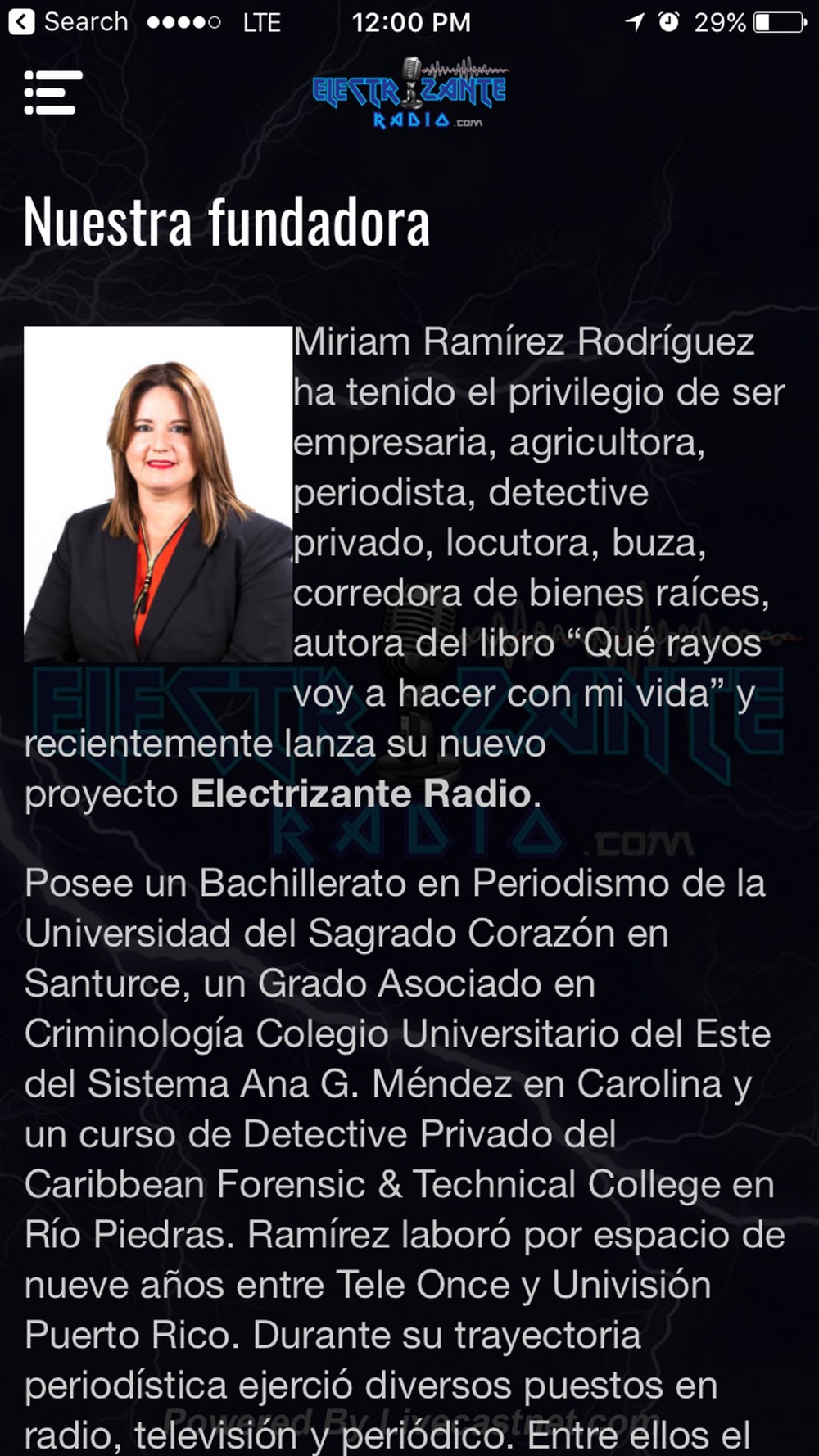 Electrizante Radio es una emisora radial online que llenará de entusiasmo y excitación tus días así como lo produce la palabra electricidad. Además escucharás esa música que nunca muere, “oldies”, que te transporta a las nubes; acompañada de palabras de luz, aliento, confianza, que te pondrán las neuronas a trabajar mejor para que no olvides que estás vivo y que eres importante.