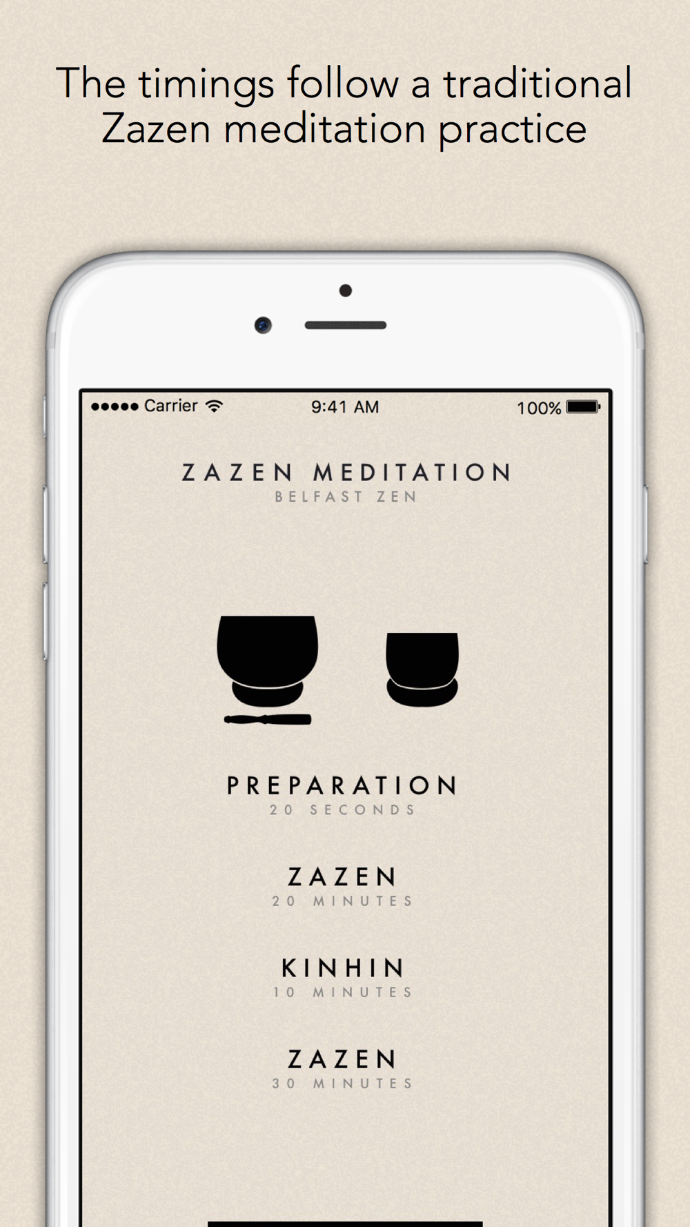 Created with practitioners from Belfast Zen, the Zazen Meditation app was designed to be used in the home or for small sitting groups. The timings follow a traditional Zazen meditation practice, and you can choose either the basic Zazen or a Zazen and Kinhin practice.