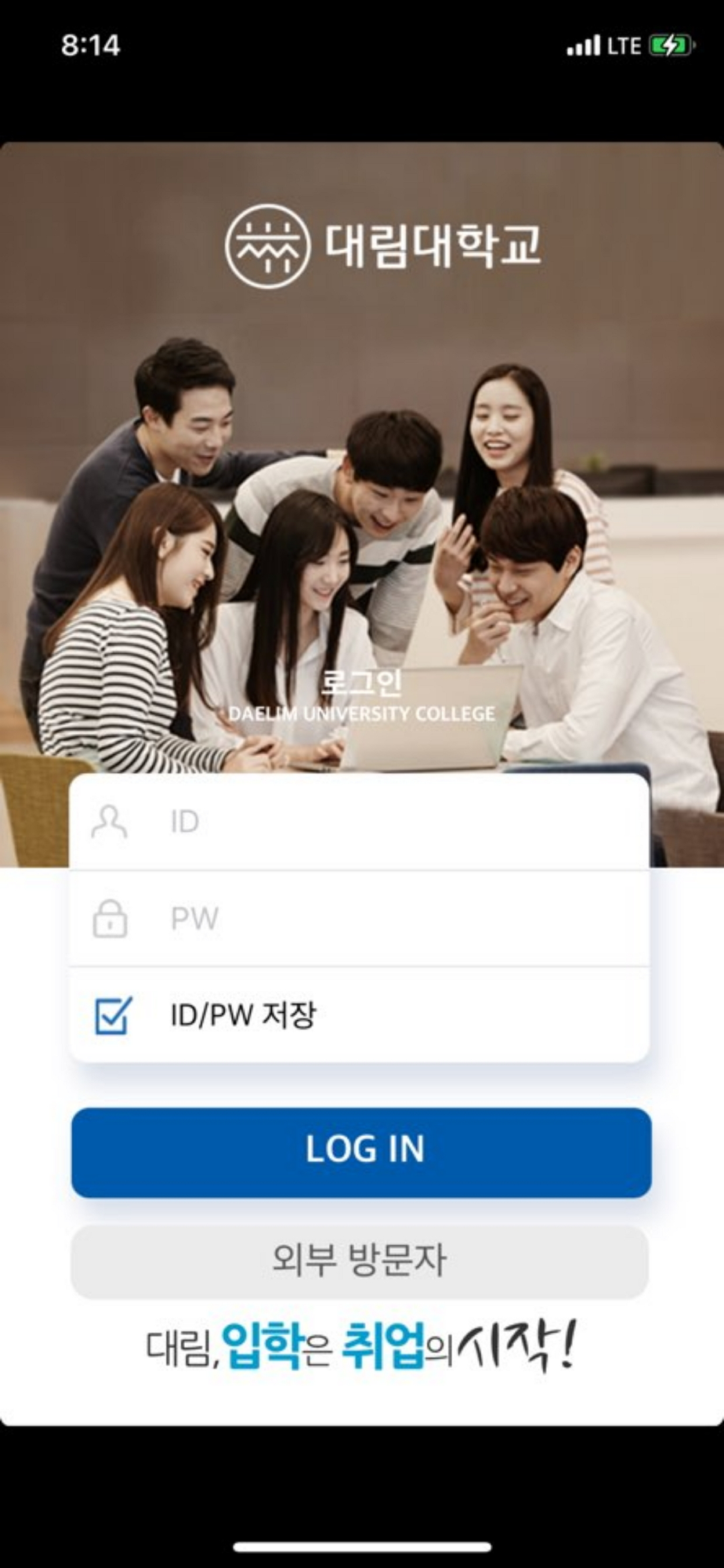 대림대학교 학사 정보 시스템 로그인 계정을 그대로 사용하여 로그인 하실 수 있습니다.