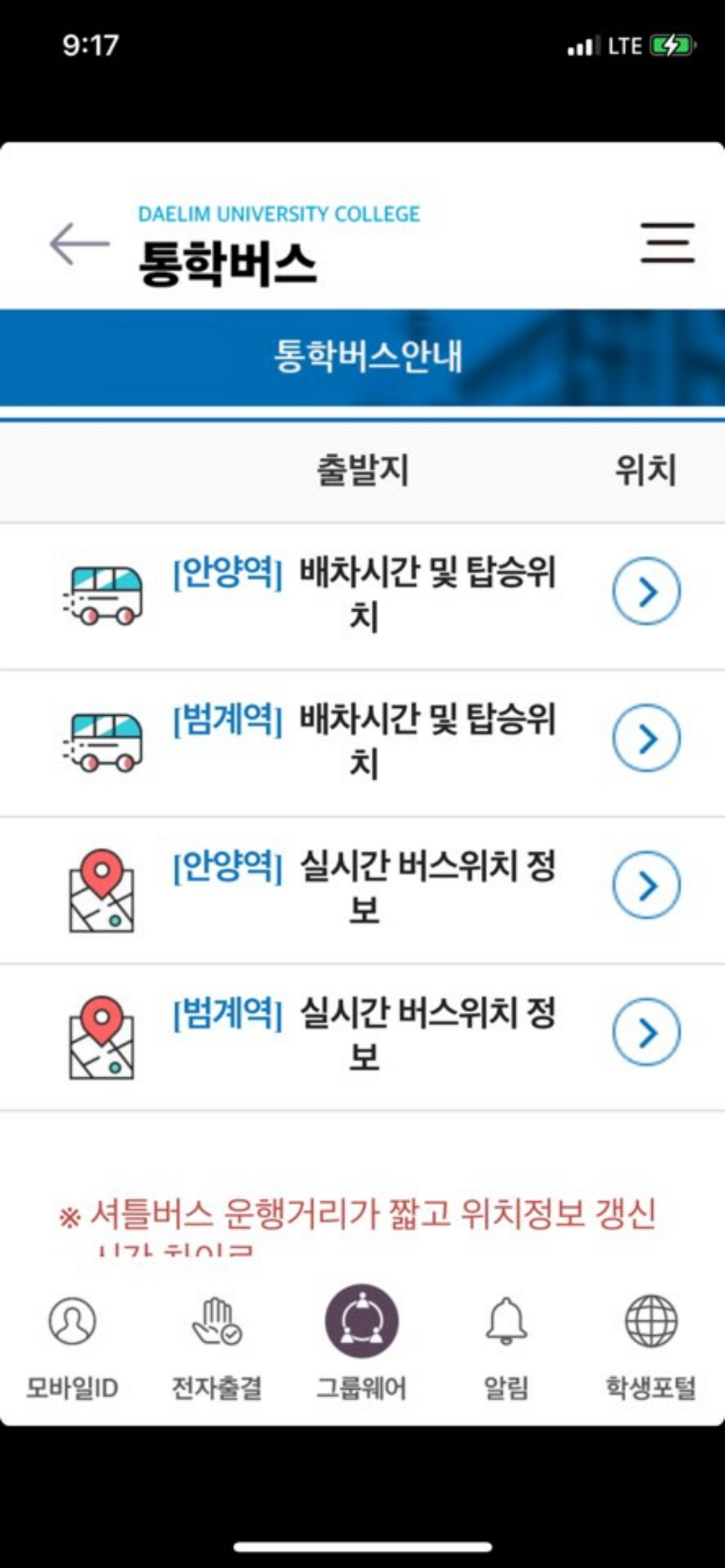 대림대학교 내에서 사용 할 수 있는 스마트캠퍼스 앱입니다.