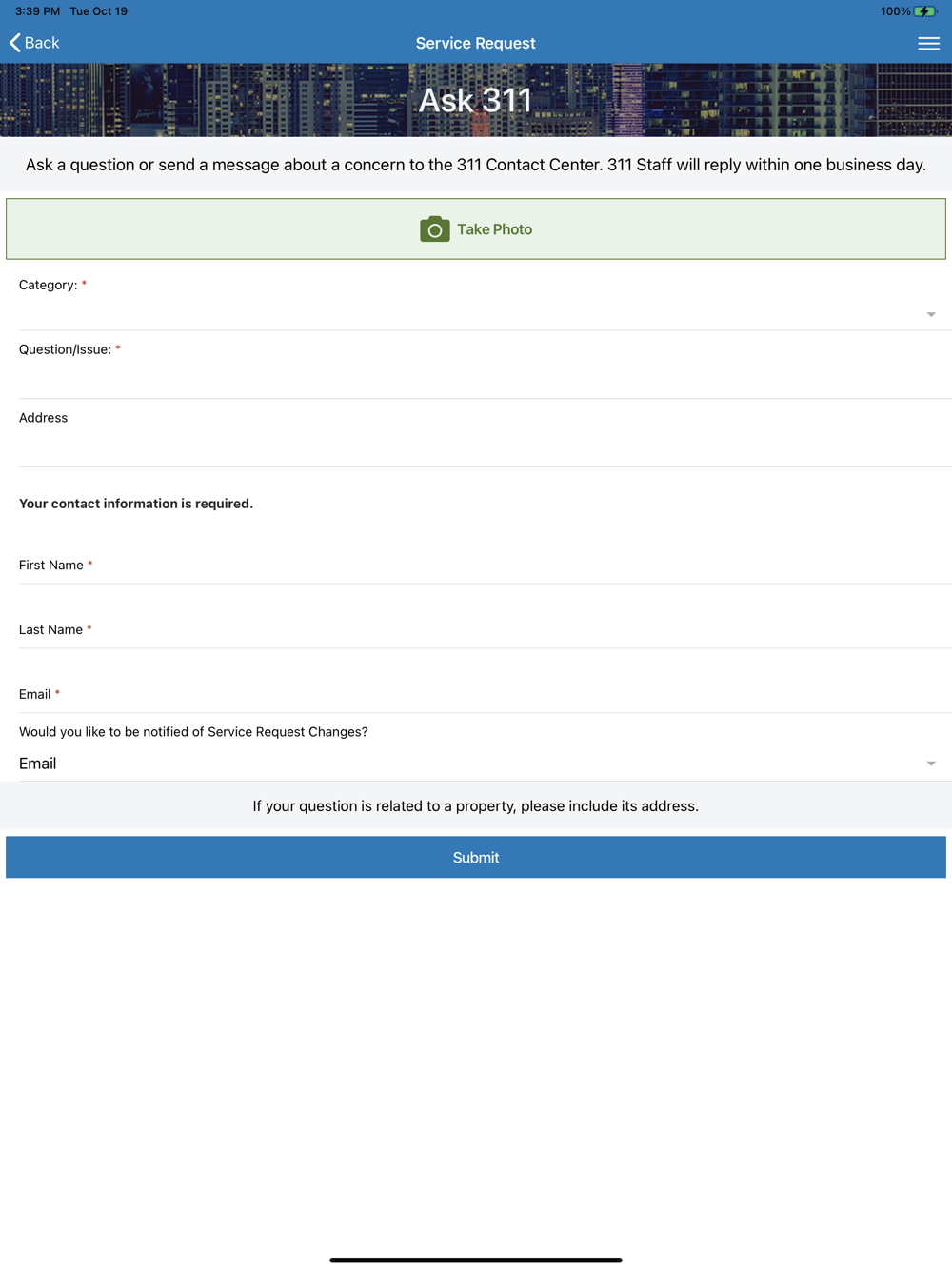 Miami311 is a mobile application which enables the residents of City of Miami to report neighborhood problems and code violations to the 311 Contact Center.