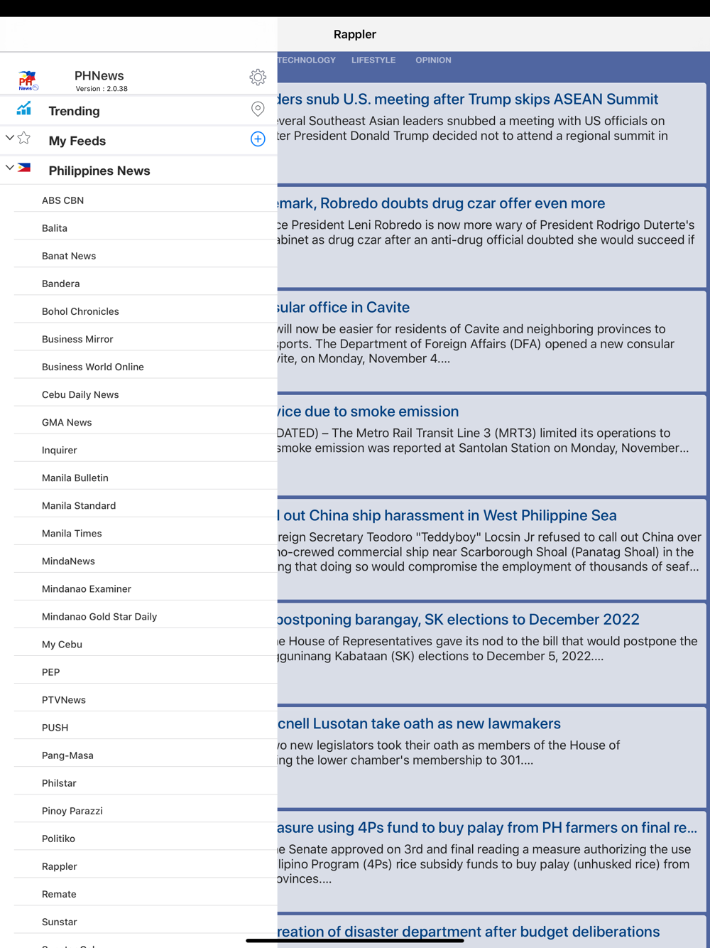 Philippines news from all major broadsheets, tabloids, and regional news all in one application.