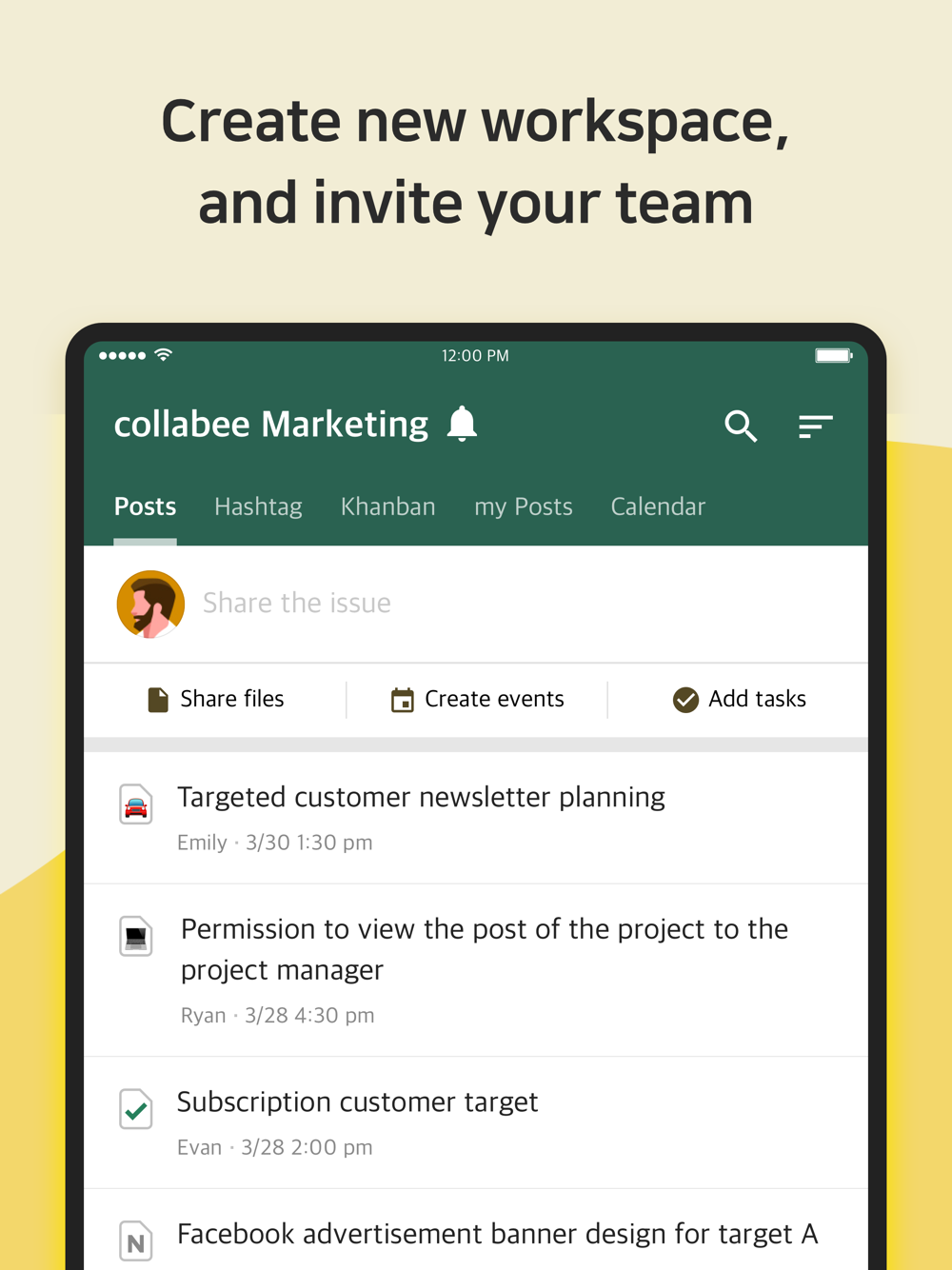 collabee is a team collaboration software that lets your team communicate, manage tasks and events, and share files, all in one page.