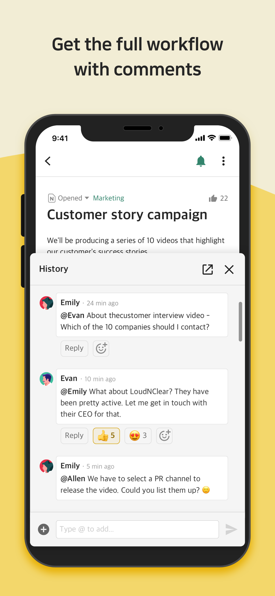 - Contextful communication : Comment and threads that contains the full workflow
