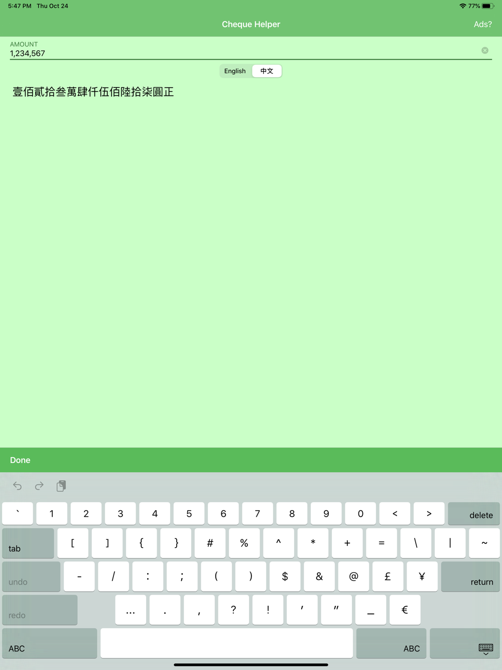Feeling difficult translating numbers to words when writing a check? This app is for you! Just enter the amount and Boom! Your amount is translated into words! Not only that, you can also translate the number into Chinese as well!
