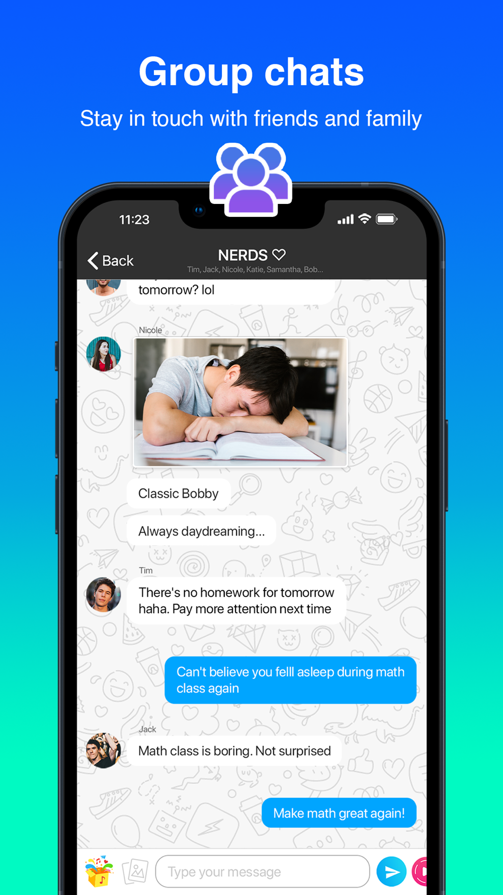 Send text messages, voice messages, video messages with all your friends and family easily, quickly and securely.