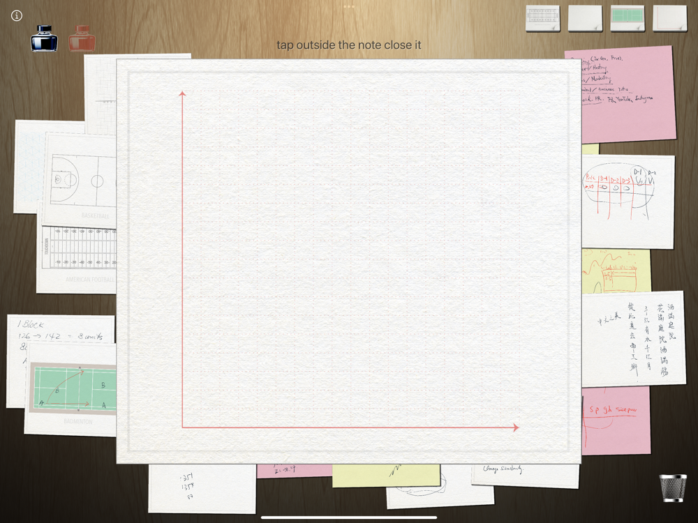 - Simple controls! Tap on a paper to create a new page and tap away from a note when done to minimize and then move it around the bulletin board.