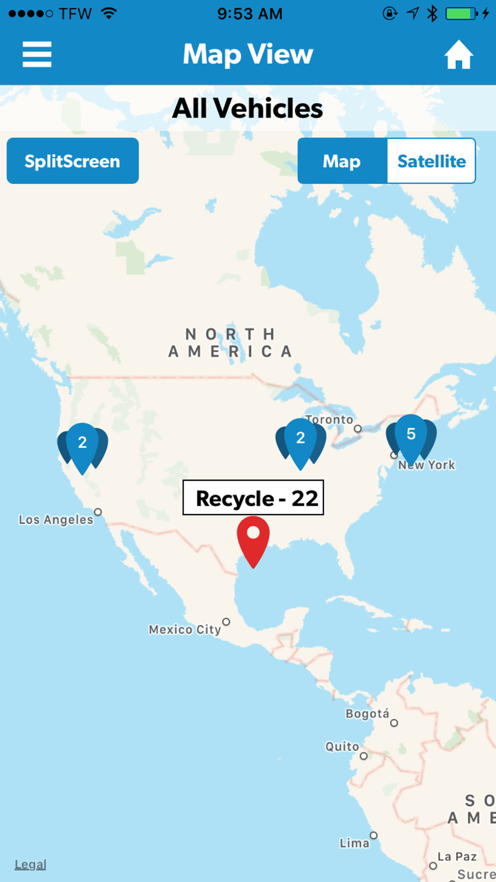1) Using Google Maps, the SkyBitz mapping module gives you the ability to see vehicle locations and current