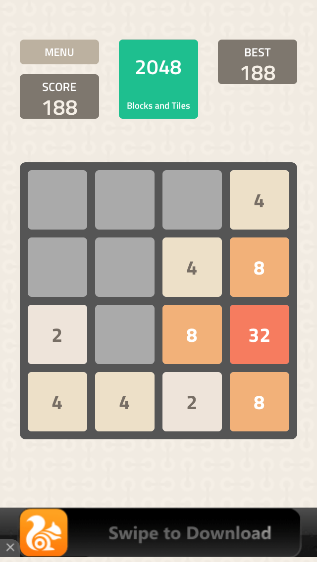 2048 Block and Tiles is played on a 4×4 grid, with numbered tiles that slide smoothly when a player moves them by swiping up, down, left or right. Every turn, a new tile will randomly appear in an empty spot on the board with a value of either 2 or 4. Tiles slide as far as possible in the chosen direction until they are stopped by either another tile or the edge of the grid. If two tiles of the same number collide while moving, they will merge into a tile with the total value of the two tiles that collided and the player's score will increase accordingly. The resulting tile cannot merge with another tile again in the same move. Higher-scoring tiles emit a soft glow. If player make a tile with value 2048 will become winner. A player can see 5 best score on a particular device that he/she is playing the game. In 2048 there is another type game named 'Challenges'. Player will start from level 1. Higher level will become open to player if corresponding previous level has been cleared by player.