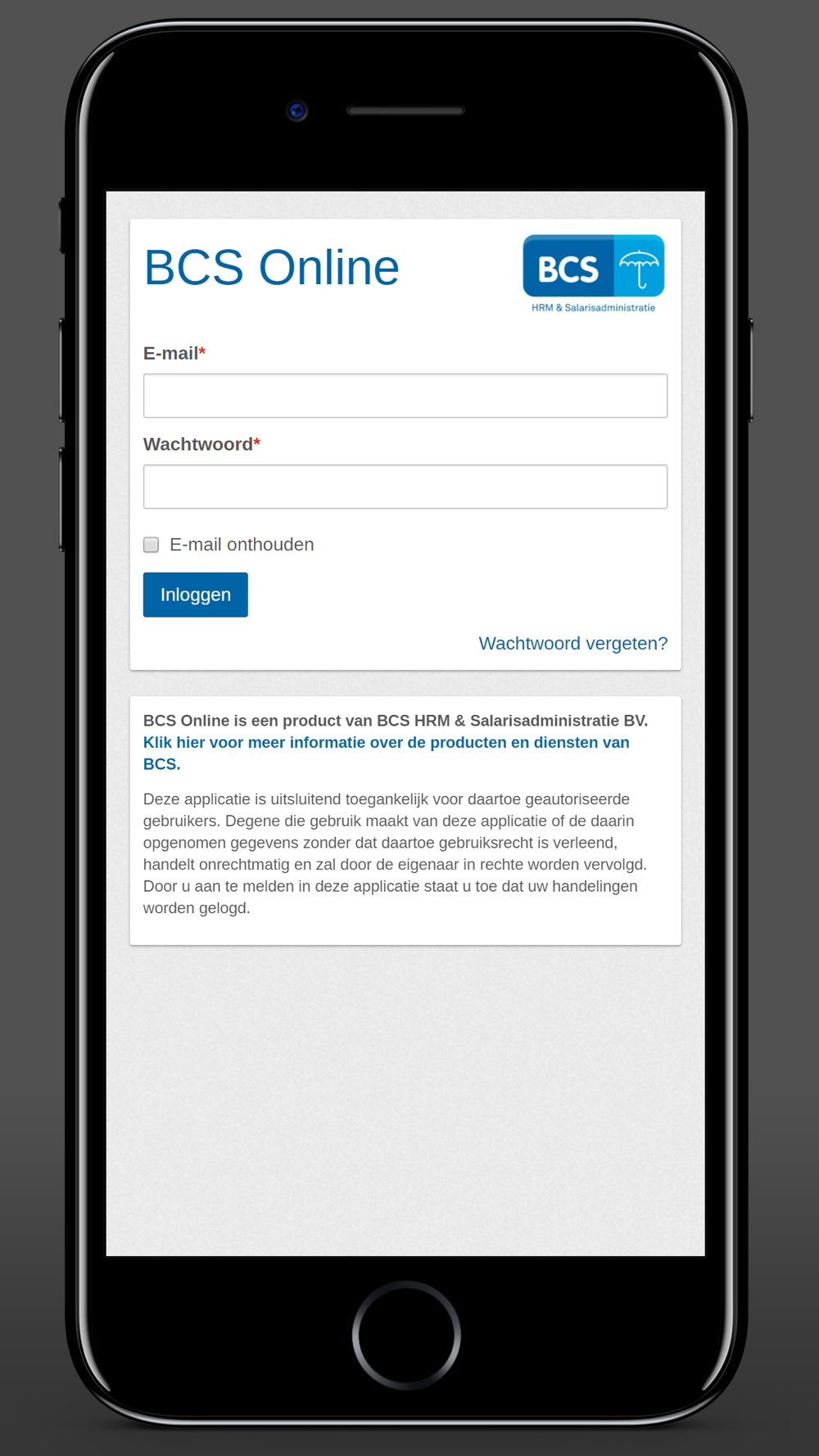 Deze app is beschikbaar voor werknemers van bedrijven die gebruik maken van het BCS Online Small Business portaal van BCS HRM en Salarisadministratie B.V..