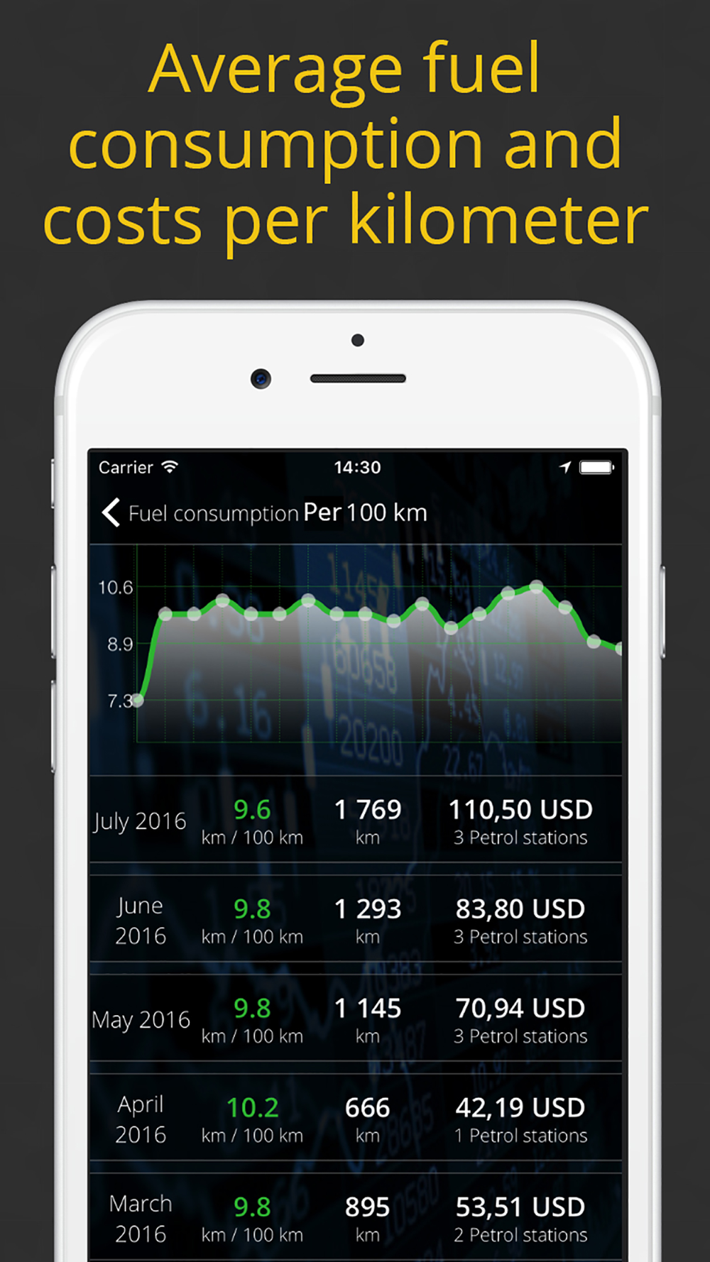 - See expenses analyzed by category, including Gas, Car Wash, Servicing, Repairs, and many others;