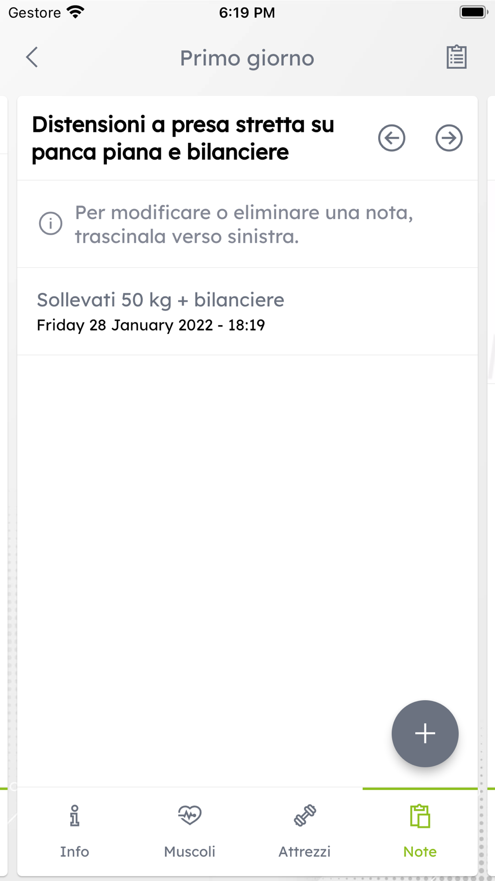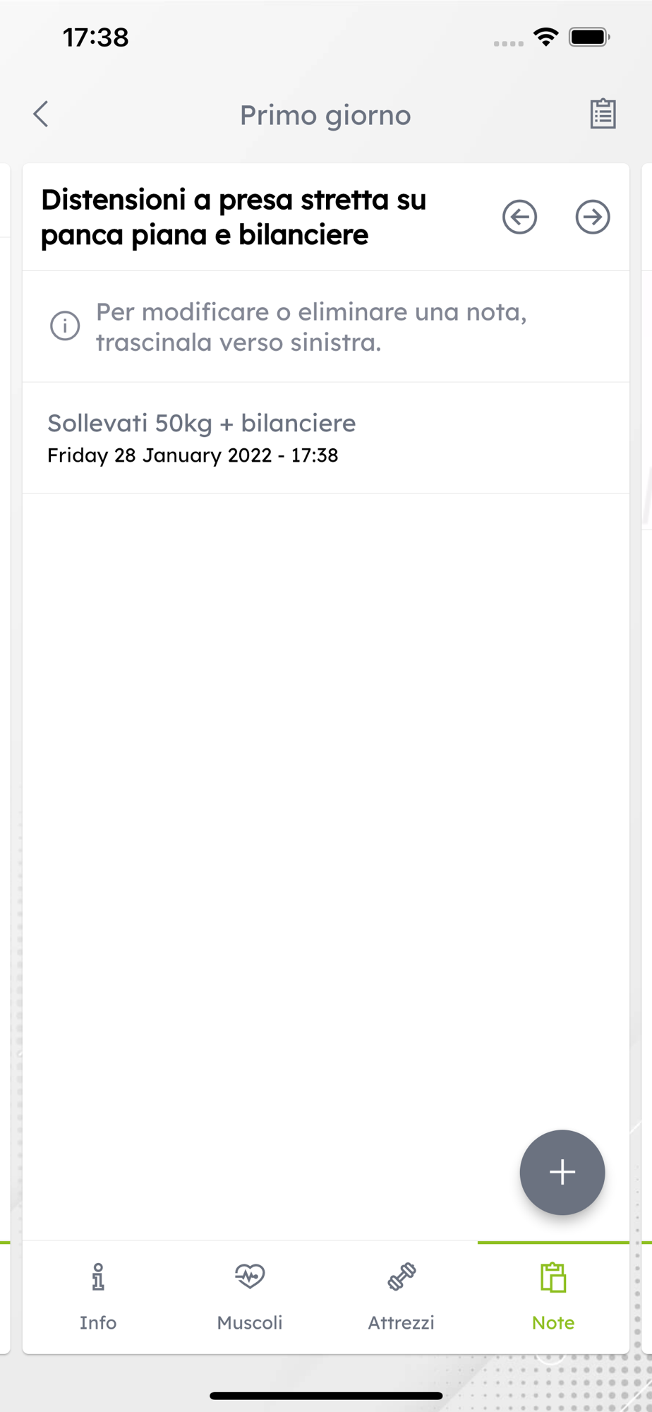 Memorizza le note e condividi i tuoi progressi con il personal trainer per ottenere sempre il massimo da ogni allenamento!