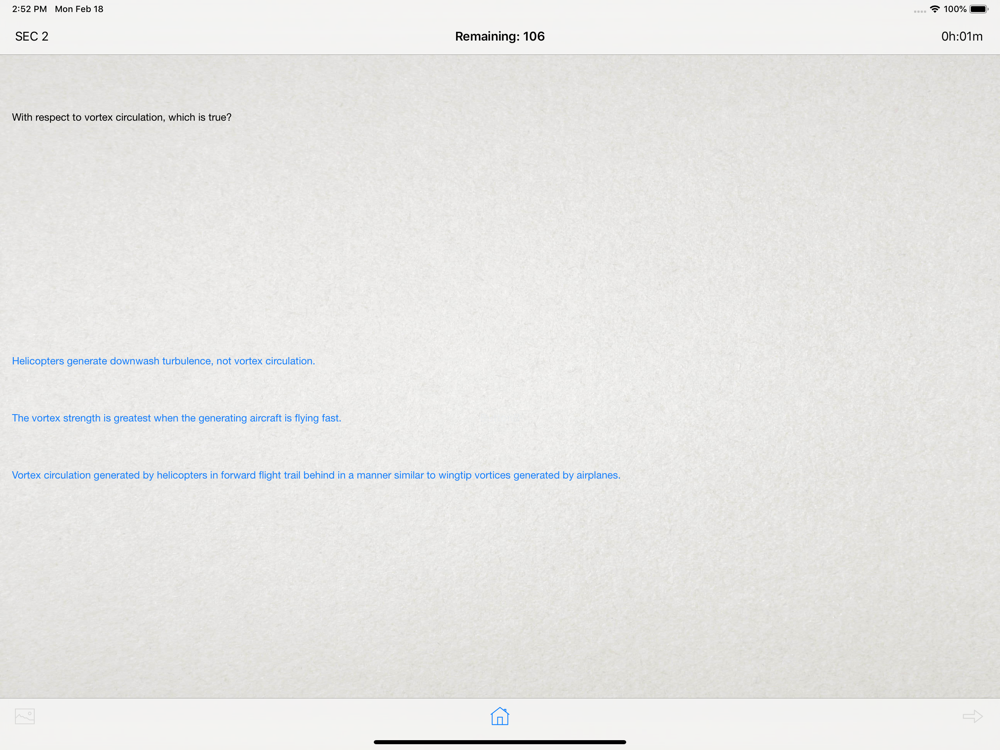 Test Mode - Simulates the test you are going to take at a FAA Knowledge Test Center. In this mode, you are asked 100 questions that are pulled from the entire question bank.