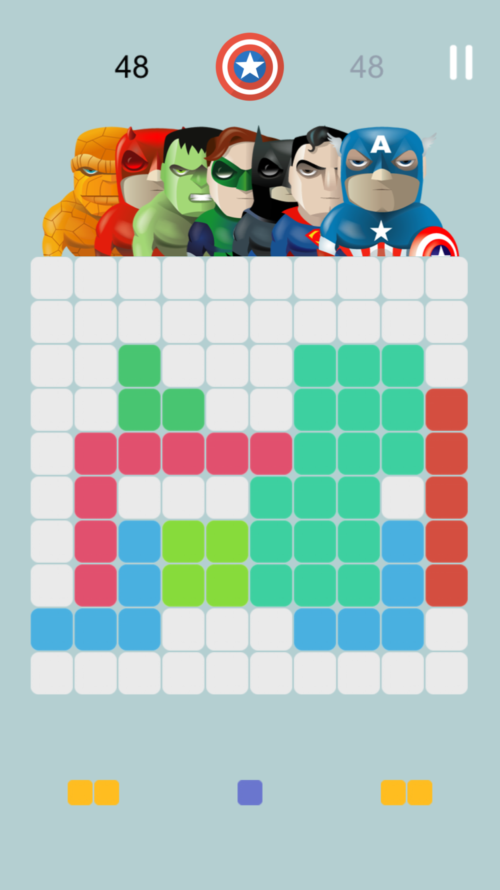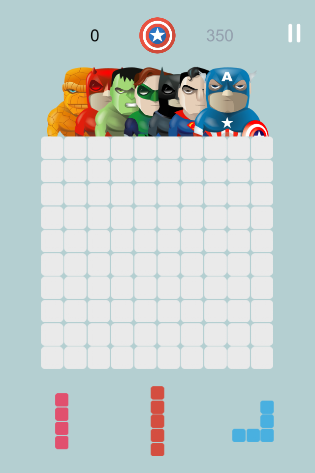 Drag and drop the module into the screen, in the vertical and horizontal direction to create the elimination of the entire line, to reach a certain score, there is a hero role, see how much you have the ability to reproduce the number of heroes, let us wait and see.
