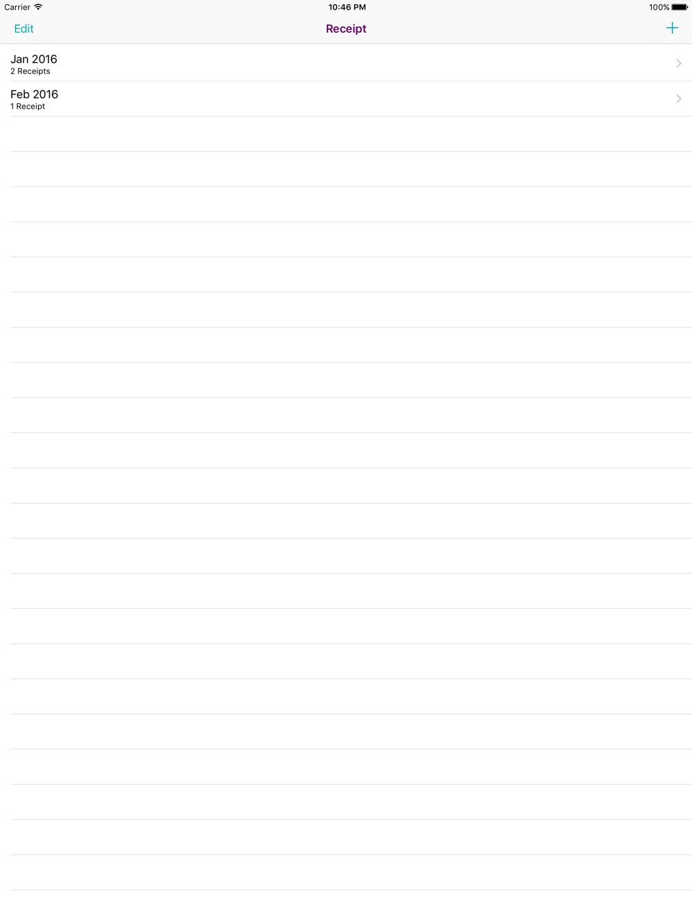 What happens once you have a lot of categories though? Older categories may become less relevant. To solve this, when viewing the categories, select the "Edit" navigation bar item to reorder the categories to a way that will enable you to use Receipt! efficiently!