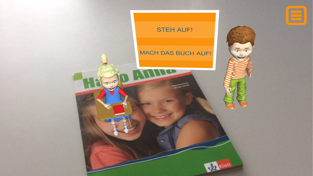 Az eszköz kamerájának bármelyik Hallo Anna tankönyv vagy munkafüzet borítójára történő irányításával megjeleníthető Anna és Benno háromdimenziós képe, és a kiválasztott szereplővel végrehajtható a tankönyvben is szereplő négy alaputasítás.
