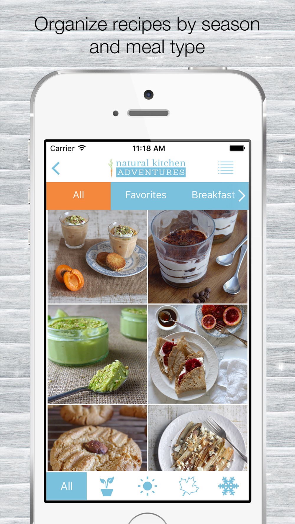 • Choose recipes by meal type: breakfast, light bites, main dishes, salads, desserts and sweet treats for utmost east