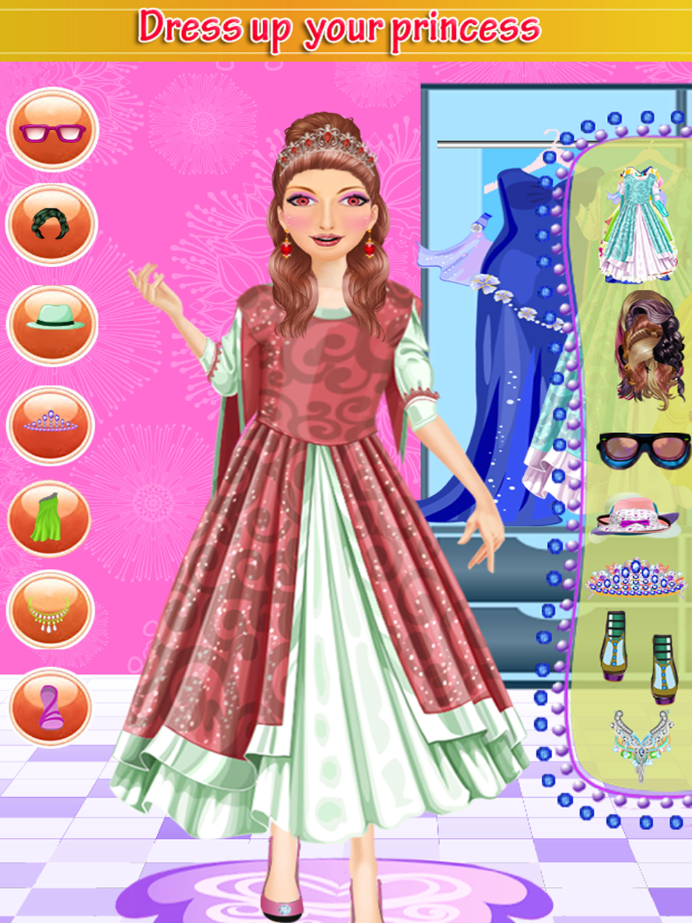 Let start hair princess hair styles hair salon game to make a stylish look of beautiful princess. You will go through fashion spa salon, beauty makeup for girls salon, princess makeover & colorful dresses in dress up sections. A variety of fantastic shoes, hairs styles, dresses, glasses, caps, necklaces, earrings and lots of things which will enable cute girls & kids to be prepare for a competition for ready up a simple queen for stylish look.