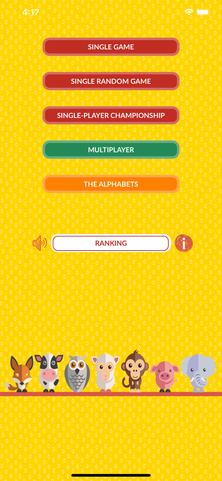 - Single-player championship: organized in levels, it starts with a minimum number of cards of the Englilsh alphabet and once completed it moves to other languages;