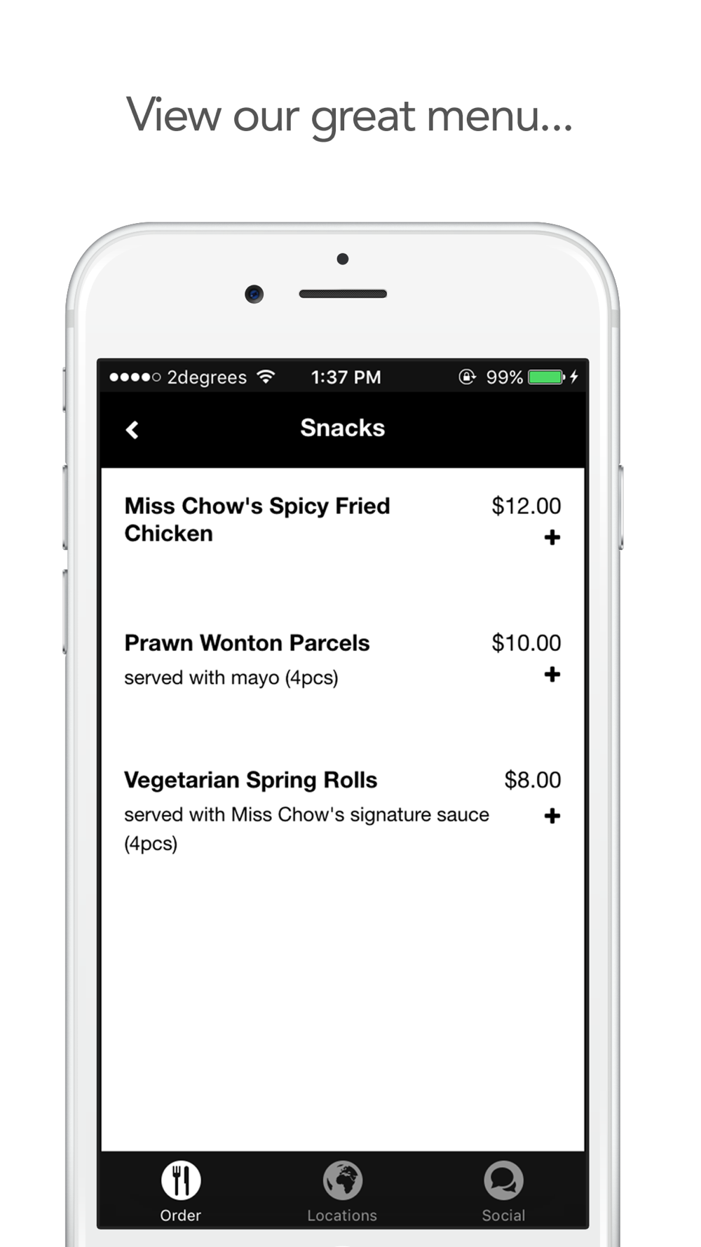 Welcome to Miss Chow's mobile ordering. Customise and order anything from our delicious menu.